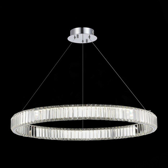 Подвесная люстра St Luce серии TIVOLI. Освежит ваш интерьер. Высота 7.6 cm. Диаметр 62 cm Параметры пылевлагозащиты IP — 20. Форма круглая. Плафон хрустальный прозрачный, а материал/цвет арматуры металл/хром. Имеются встроенные светодиодные лампы, рассчитанные на весь срок службы светильника. Площадь освещения охватывает 14 m². Идеально подходит для гостиной или спальни. Страна происхождения бренда — ИТАЛИЯ. Вес с упаковкой 7.6 kg