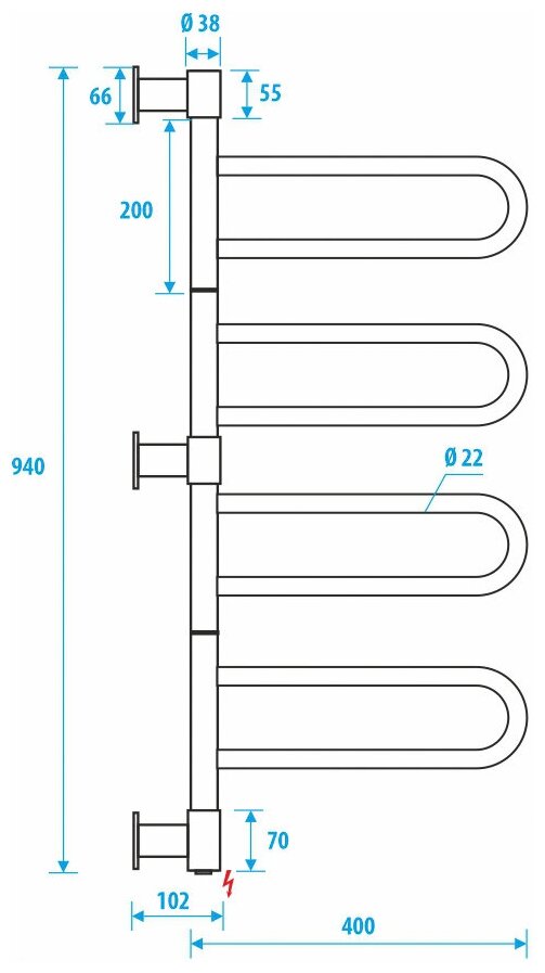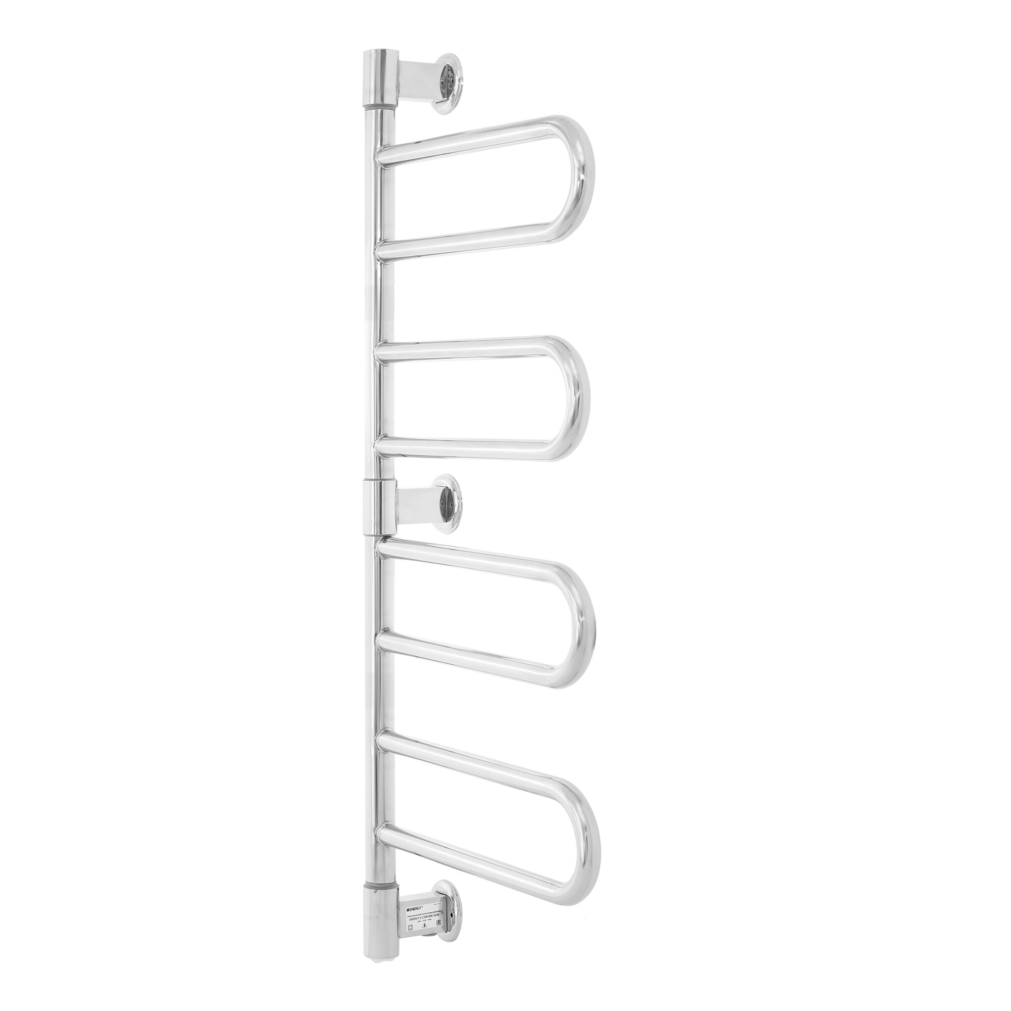 Energy U chrome G4K - электрический полотенцесушитель с четырьмя U-образными поворотными греющими секциями низкого энергопотребления - 12 Вт на секцию. Изготовлен из высококачественной пищевой нержавеющей стали.Нагревательный элемент прибора - греющий кабель в изоляции из кремнийсодержащей резины. Может быть подключен как скрытым, так и наружным способом. Подключение производится через нижнюю стойку. Оснащён влагозащищенным выключателем с индикатором работы.Полотенцесушитель экономичен в эксплуатации и сопоставим по энергозатратам с электрической лампочкой. Нагрев до рабочей температуры за 5-10 минут.Имеет II класс электрической защиты и степень защиты от влаги IP 44, не нуждается в заземлении и подходит для установки в помещениях с повышенной влажностью.Поверхность прибора обработана методом электроплазменной полировки, не тускнеет и устойчива к механическим повреждениям в течение всего срока эксплуатации.Производство: КНР.