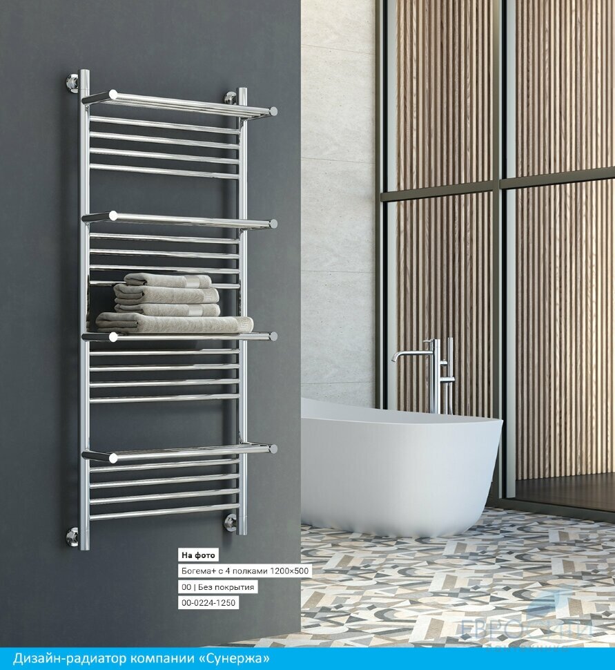Водяной полотенцесушитель Сунержа Богема+ 600х400 00-0223-6040 с полкой.