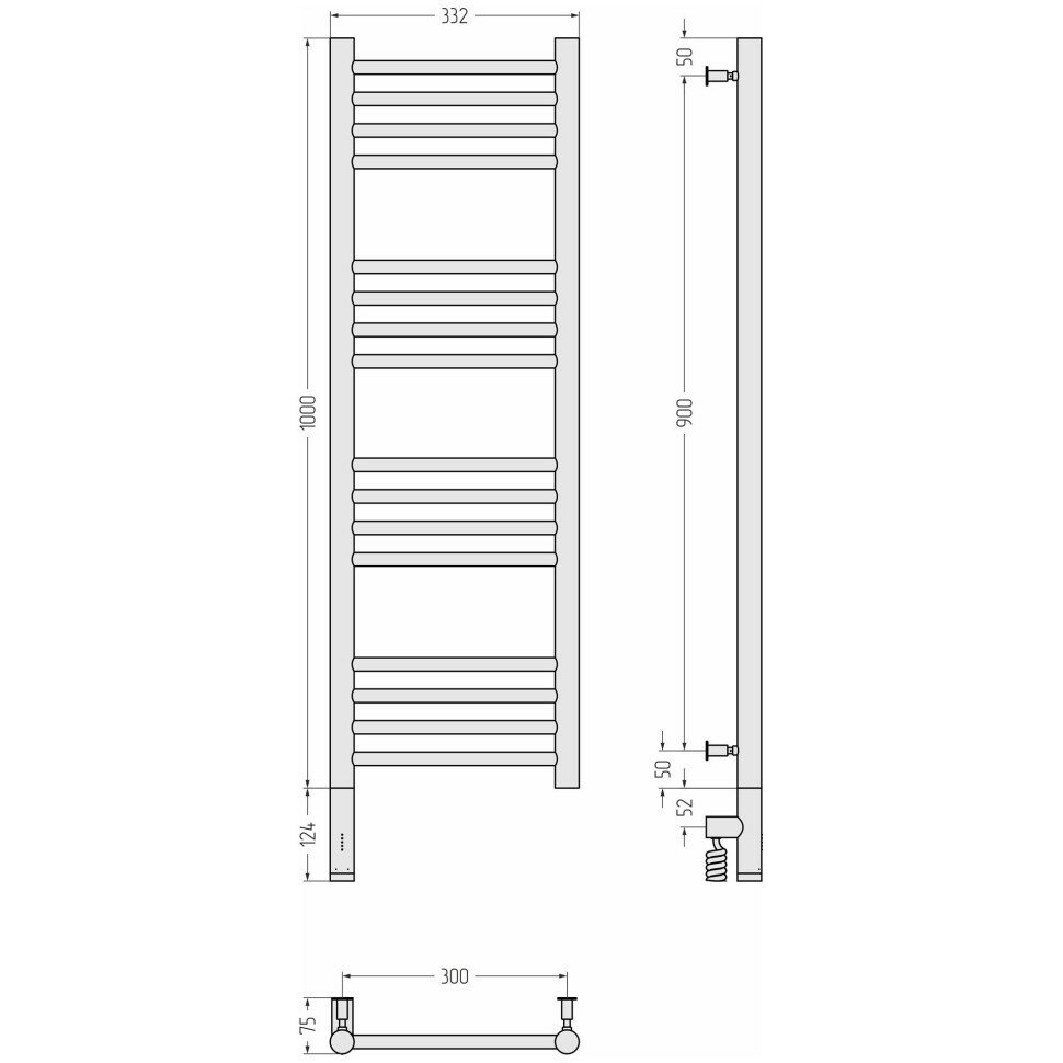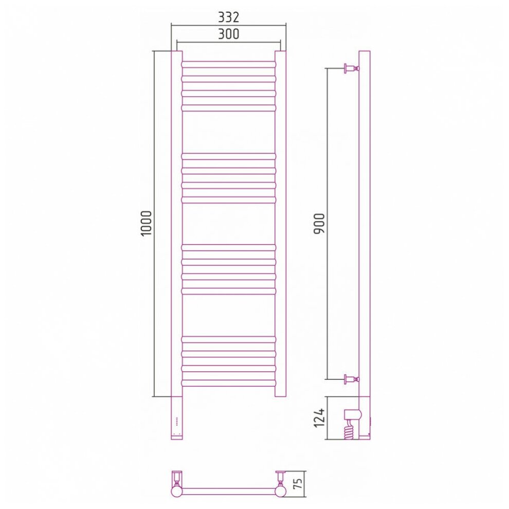 Электрический полотенцесушитель Сунержа Богема 3.0 прямая 1000x300 L 00-5804-1030.