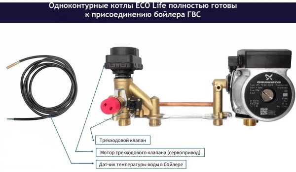 - Датчик температуры бойлера ГВС в комплекте (в одноконтурных моделях);