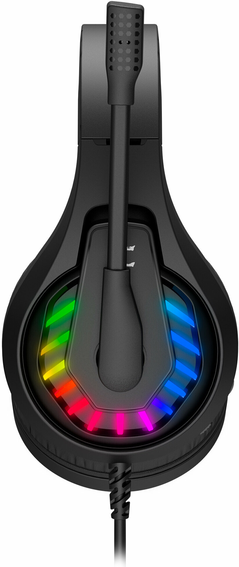 Не жмёт, хорошая эргономика, поворотный микрофон, толстый и длинный кабель, подсветка, мягкое оголовье