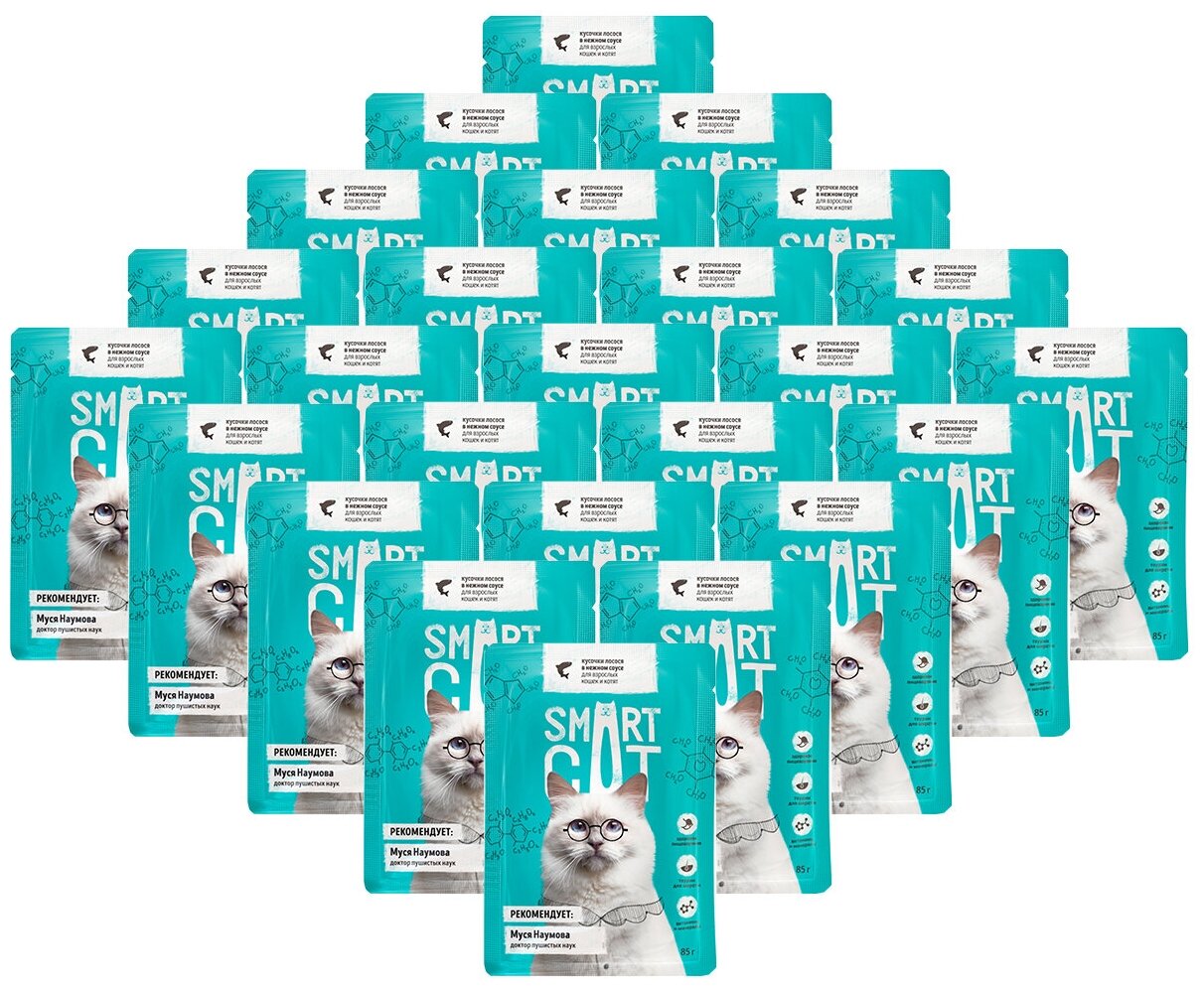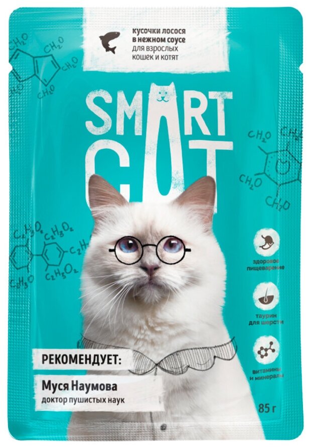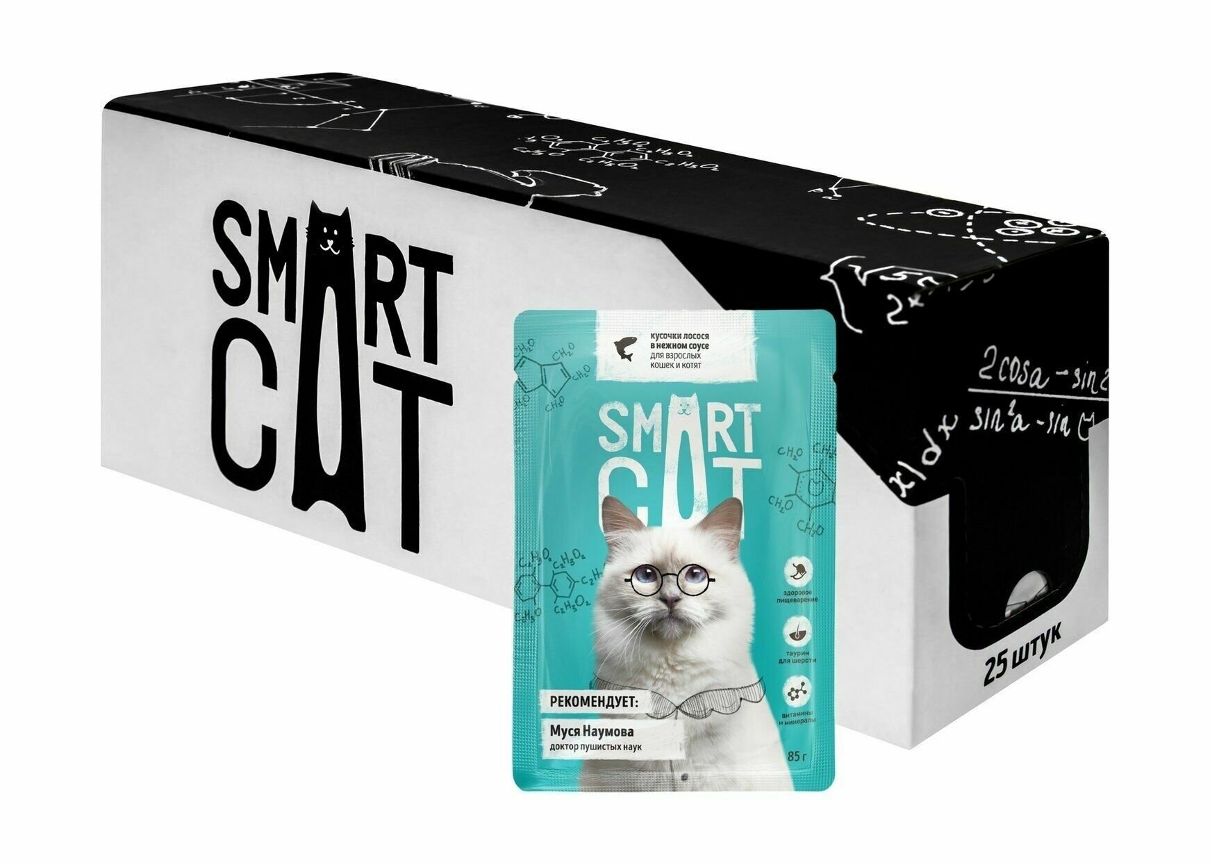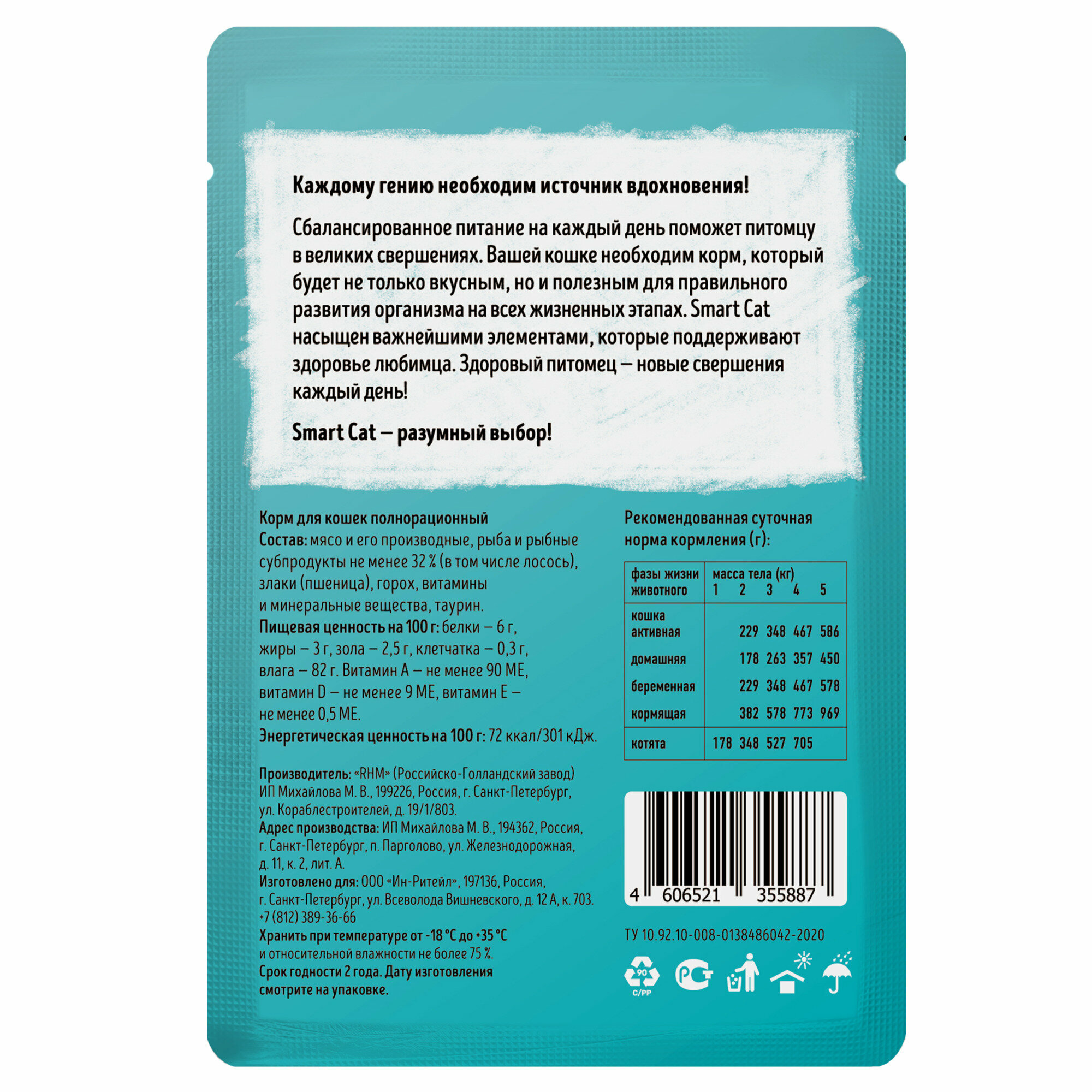 Влажный корм для кошек Smart Cat кусочки лосося в нежном соусе пауч 0085 кг