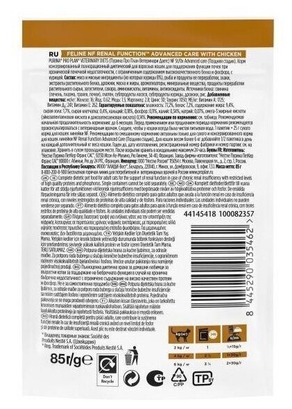 Влажный корм Purina Pro Plan PVD NF Renal Function Advanced care для поддержания функции почек с курицей пауч диета для кошек 0085 кг
