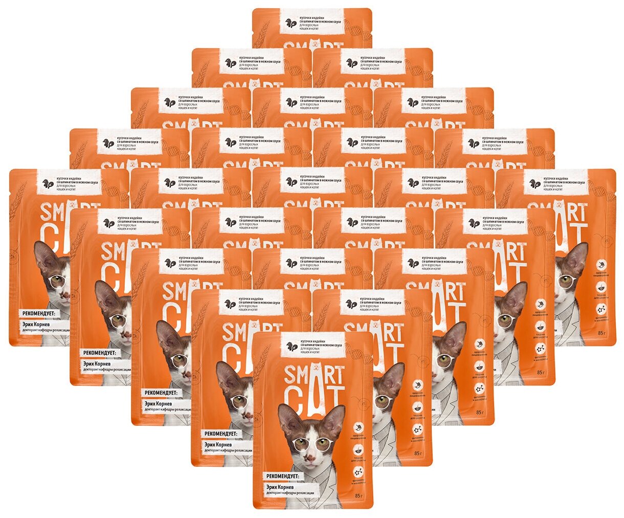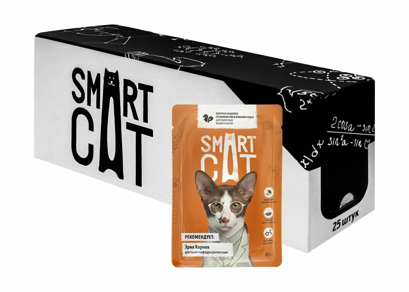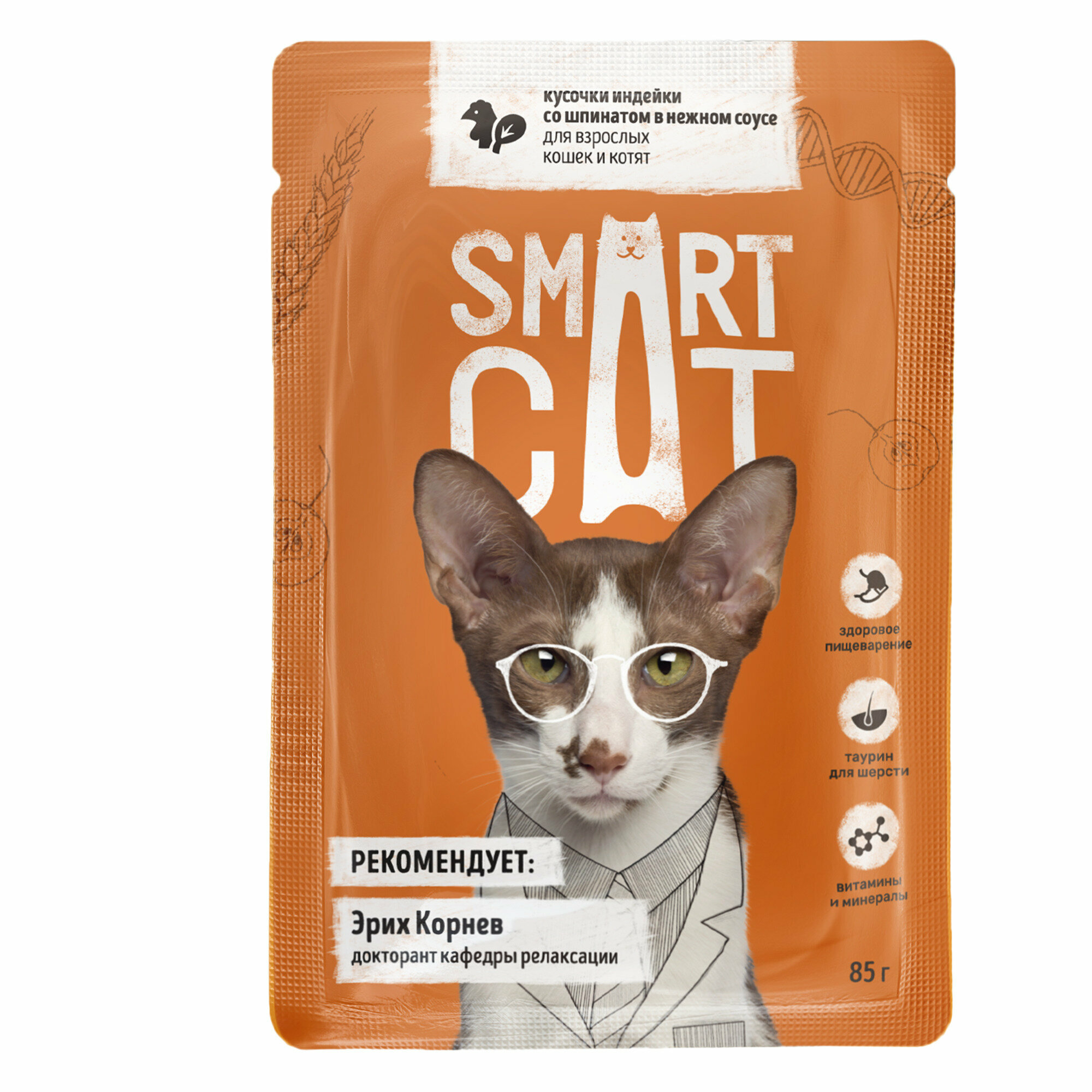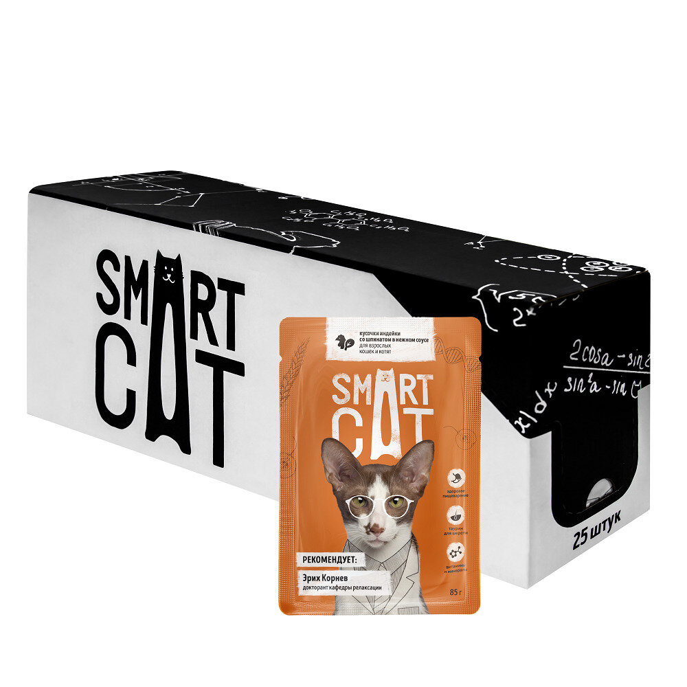 Влажный корм для кошек Smart Cat кусочки индейки со шпинатом в нежном соусе пауч 0085 кг