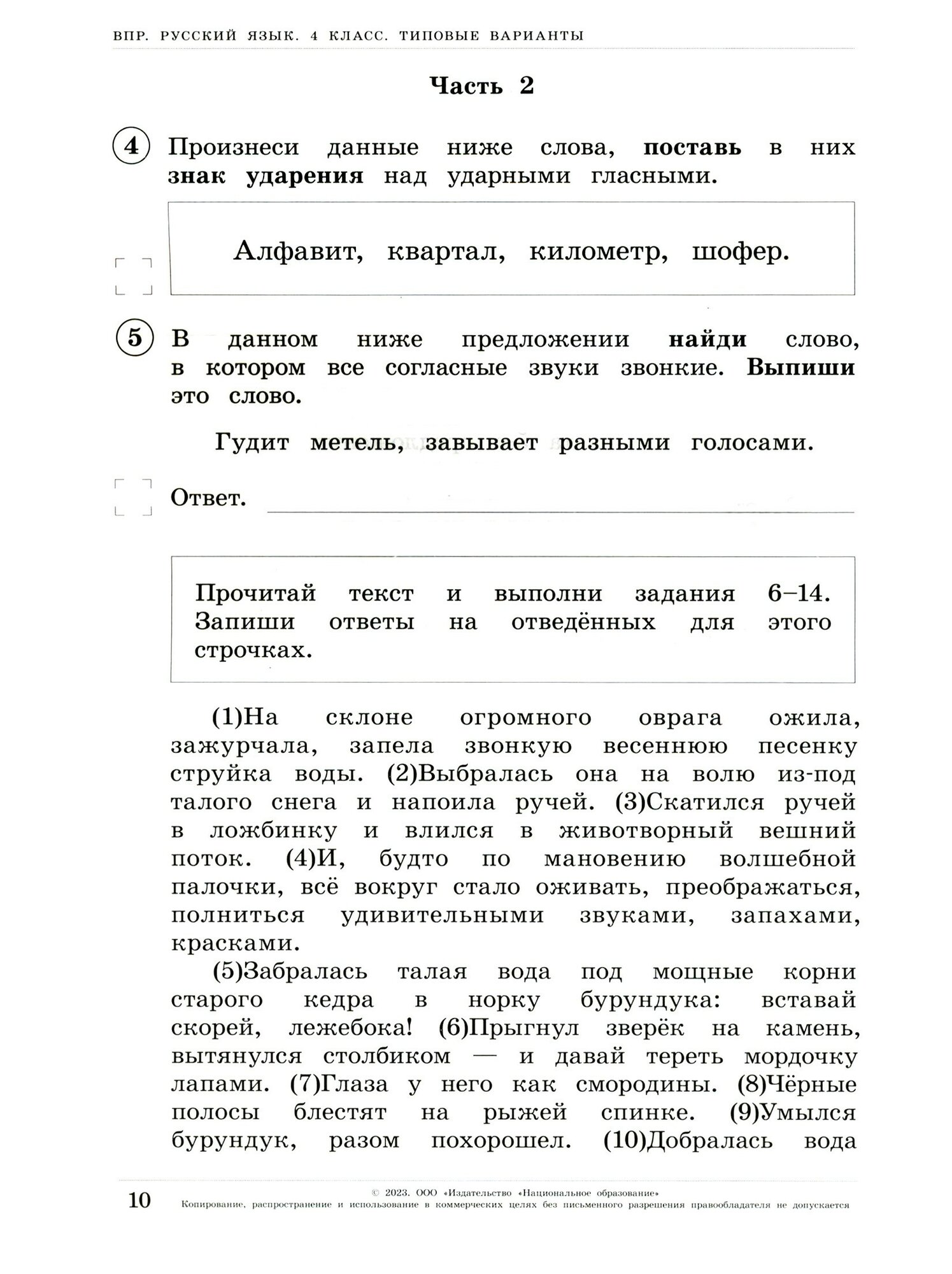 ВПР Русский язык. 4 класс. Типовые варианты. 20 вариантов (Комиссарова Людмила Юрьевна; Гавриленко Анастасия Юрьевна; Афанасьева Жанна Викторовна); Национальное образование, 2023
