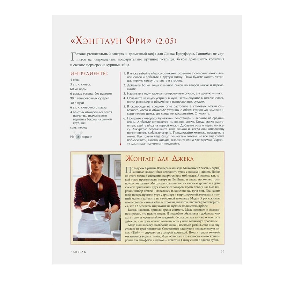 "Накормить Ганнибала: поваренная книга ценителя" – это сборник элегантных рецептов по мотивам шоу. Сериал снискал популярность не только из-за неоднозначной фигуры Ганнибала Лектера, но и благодаря особенной эстетике и стилю, созданных шоу-раннером Брайаном Фуллером. Поваренная книга позволит воплотить эстетическое безумие и уникальную атмосферу званого ужина доктора Лектера на любой кухне. Помимо оригинальных рецептов читателя ждут советы по стилизации праздничного стола и закулисные истории.