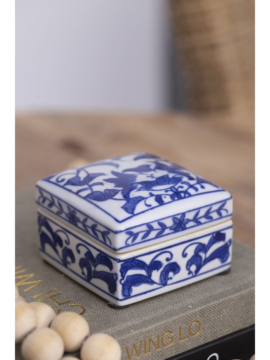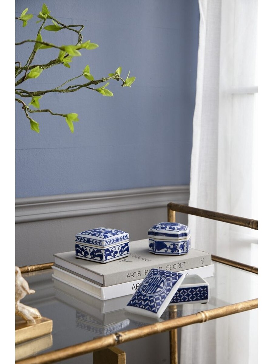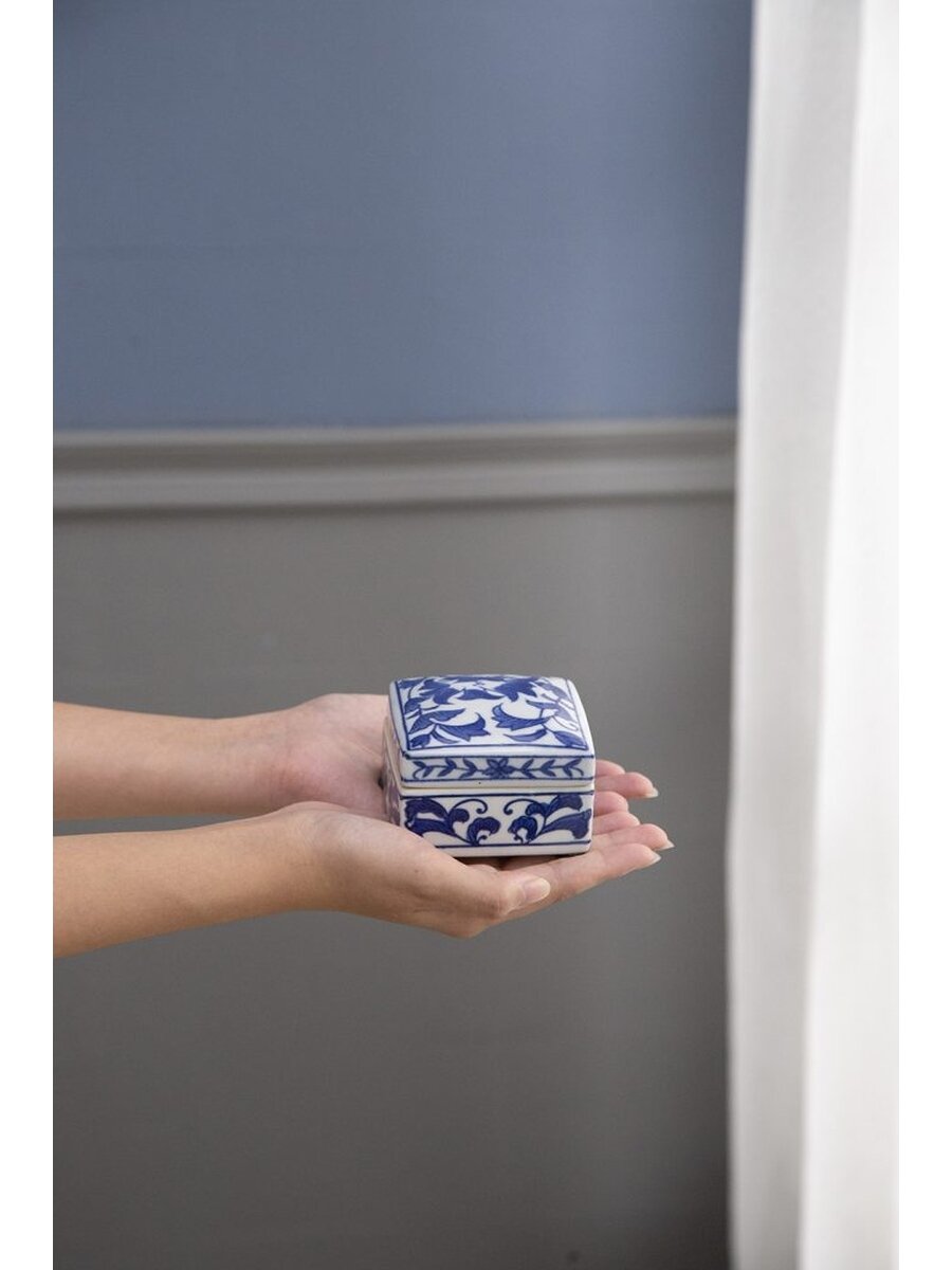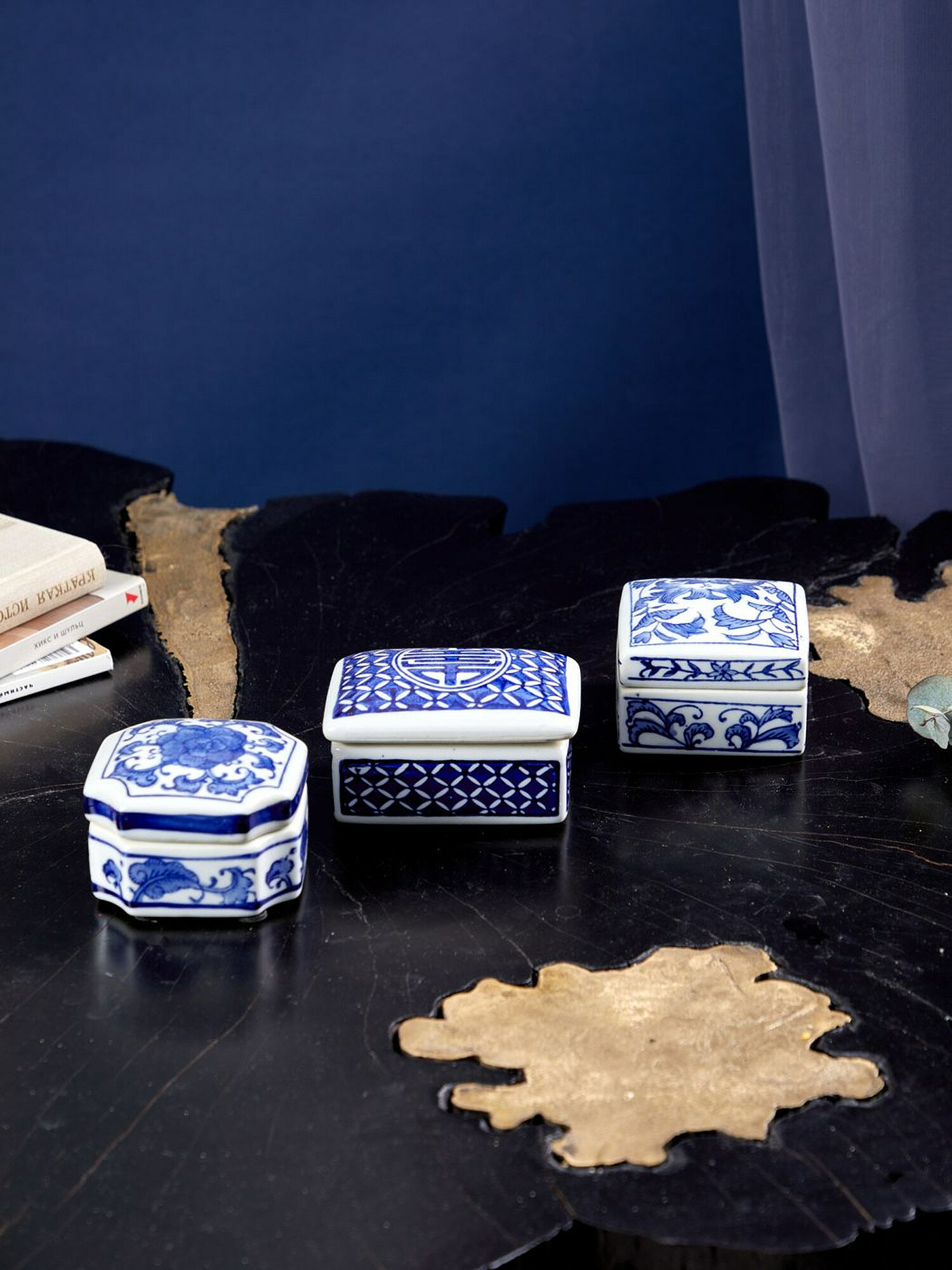 Шкатулки в бело-синей цветовой гамме из гладкого фарфора в глянцевой глазури. Поместите их в гостиной или спальне, чтобы придать роскоши вашему пространству.