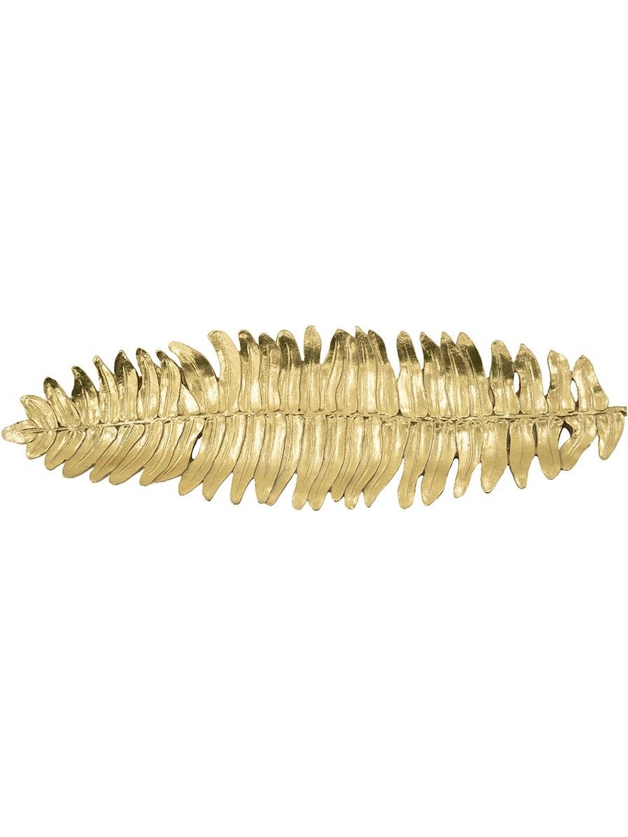 Это декоративное блюдо в виде листа украшено блестящей золотой отделкой, что будет определенно привлекать внимание. Блюдо станет центральным элементом для журнальных столиков, обеденных столов и других подобных мест. Оно идеально впишется как в помещение с винтажным дизайном, так и в современные стили.