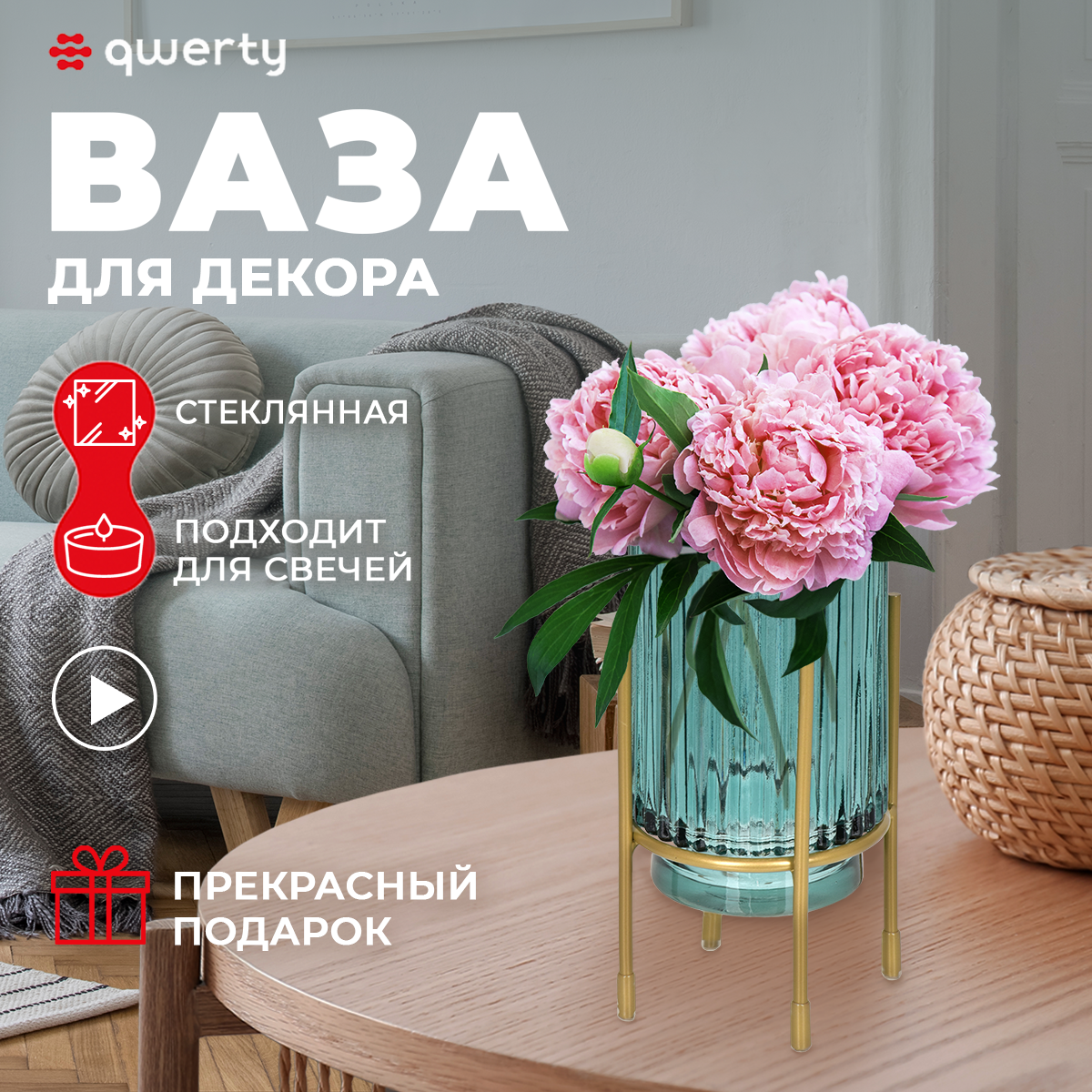 Современный дизайн интерьеров давно перевел вазу из функционального предмета (применение в качестве сосуда для цветов), в полноценный элемент для создания определенного акцента и декора. Ваза QWERTY как аксессуар для интерьера несет в себе функции эстетики и практичности и вносит в помещение ощущение красоты, неповторимости красок. Подходит для свечей, цветов и флорариума.