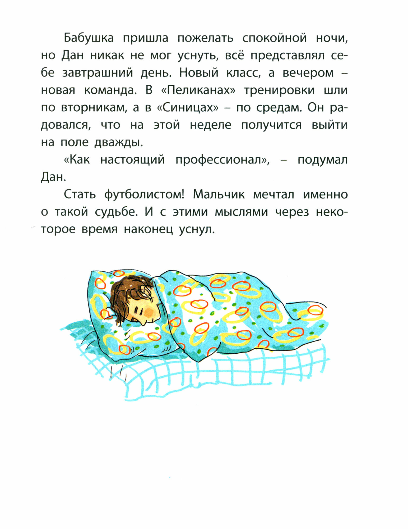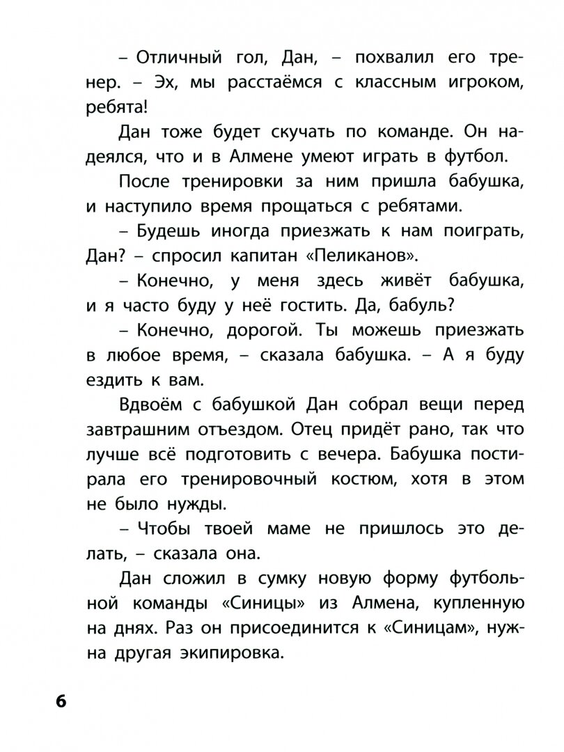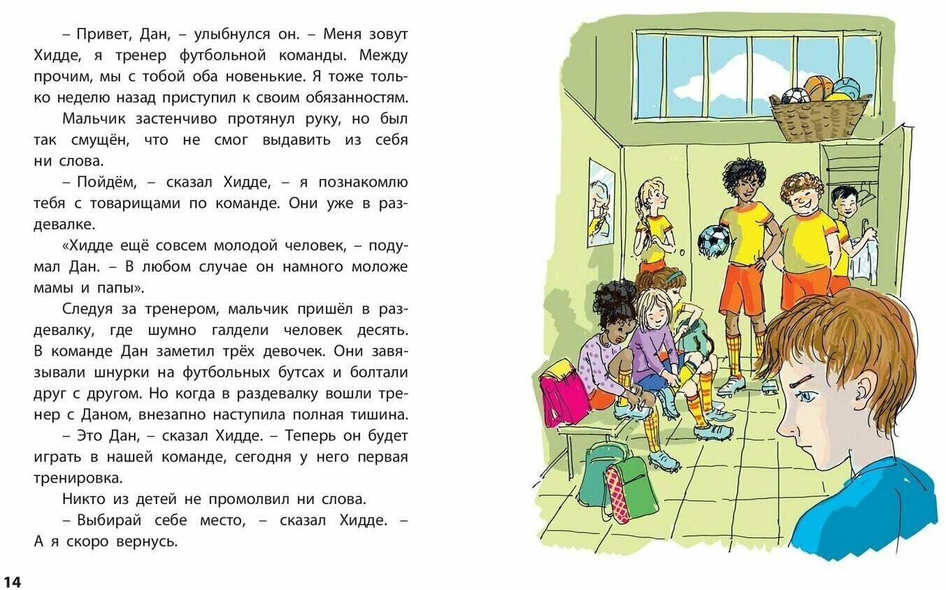 Отличная книга для детей младшего школьного возраста, книга рассказывает детям о том как найти новых друзей в новом месте, как это сложно, но возможно, как важно верить в себя и конечно же о футболе. Книга написана легко, читать одно удовольствие, яркие иллюстрации, хороший шрифт и интервал. Сын 10 лет с удовольствием прочитал книгу.