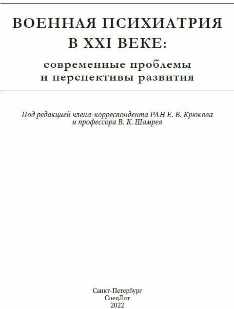 Военная психиатрия в XXI веке. Современные проблемы и перспективы развития (Крюков Евгений Владимирович, Марченко Александр Анатольевич, Шамрей Владислав Казимирович); СпецЛит, 2022