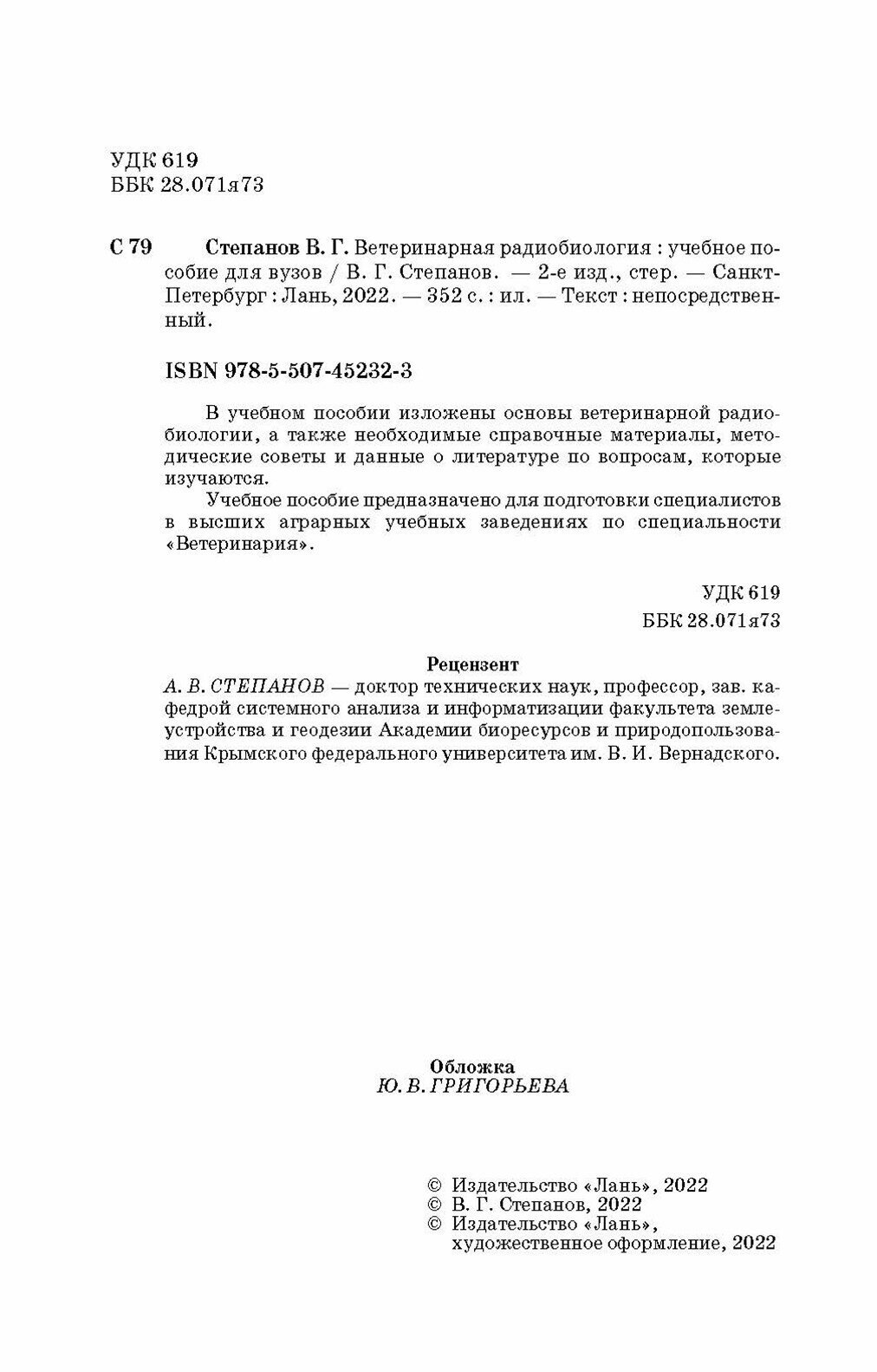 Ветеринарная радиобиология. Учебное пособие (Степанов Владимир Григорьевич); Лань, 2022