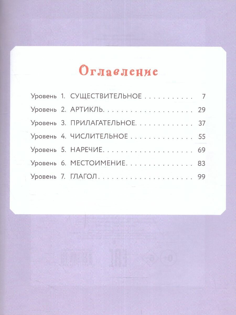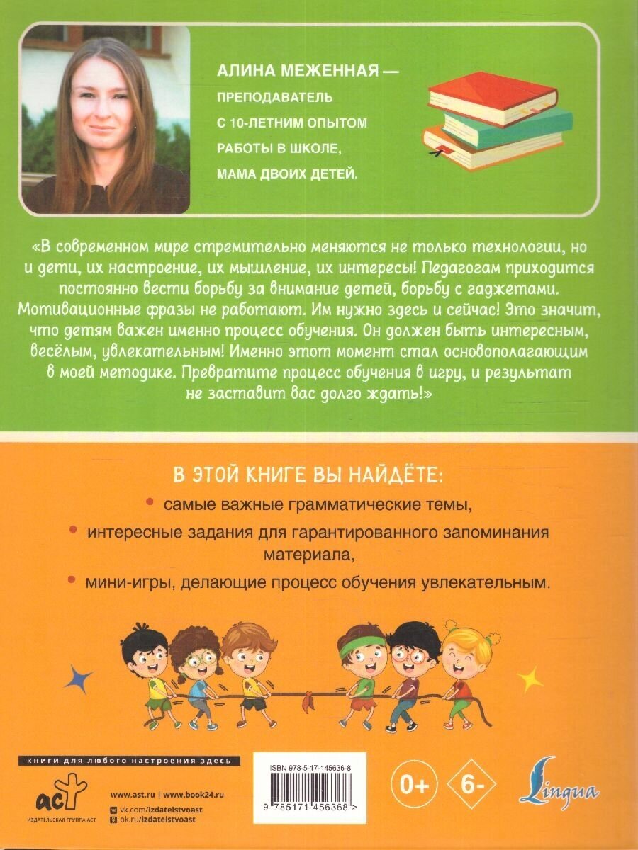 В этой книге вы найдёте грамматику, соответствующую программе начальной школы, и множество игр с заданиями, с помощью которых ребёнок запомнит самые главные конструкции и научится использовать их в речи. Учебное пособие имеет удобную и логичную структуру уроков, что позволит изучать грамматику постепенно и эффективно.