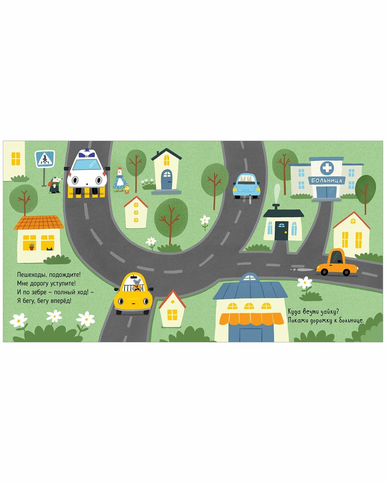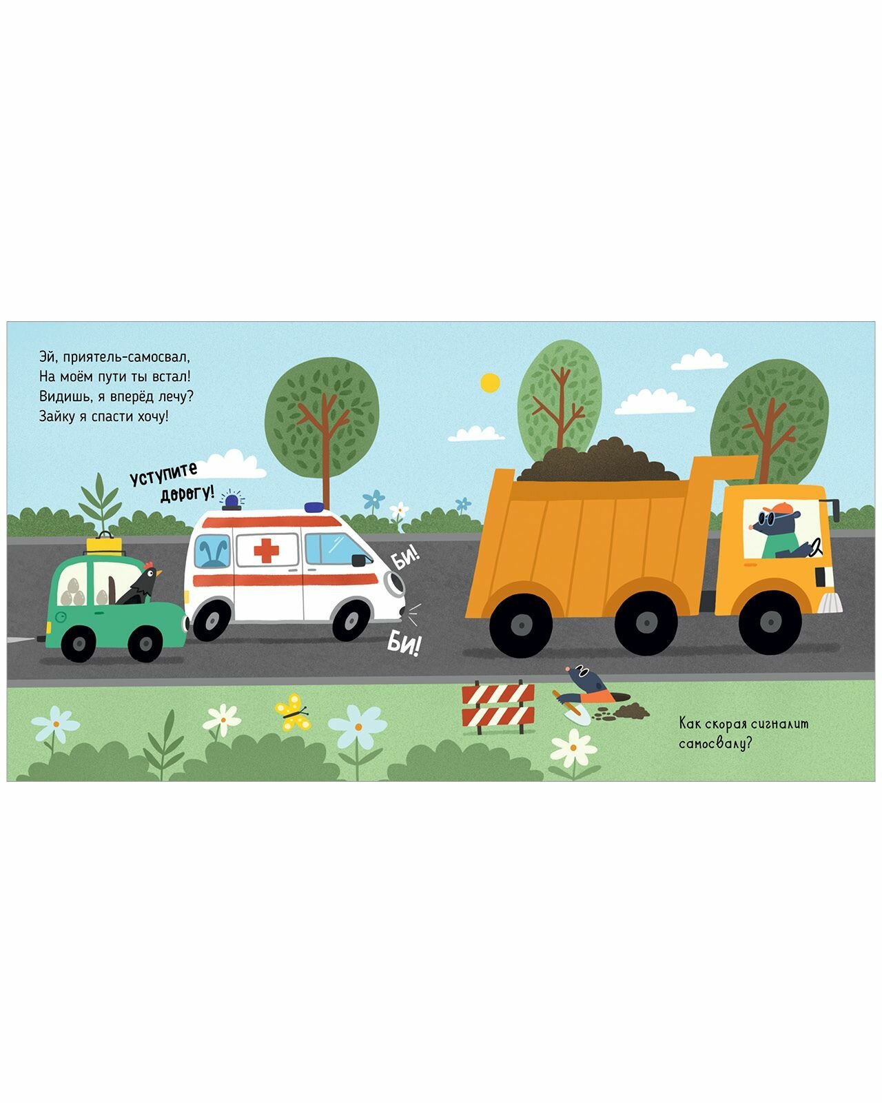 На каждой странице очень яркие и увлекательные иллюстрации, а также есть интерактивные задания для развития малышей: показать дорогу в больницу и гараж, назвать цвета светофора и другие. К покупке рекомендую, но только по акции! -