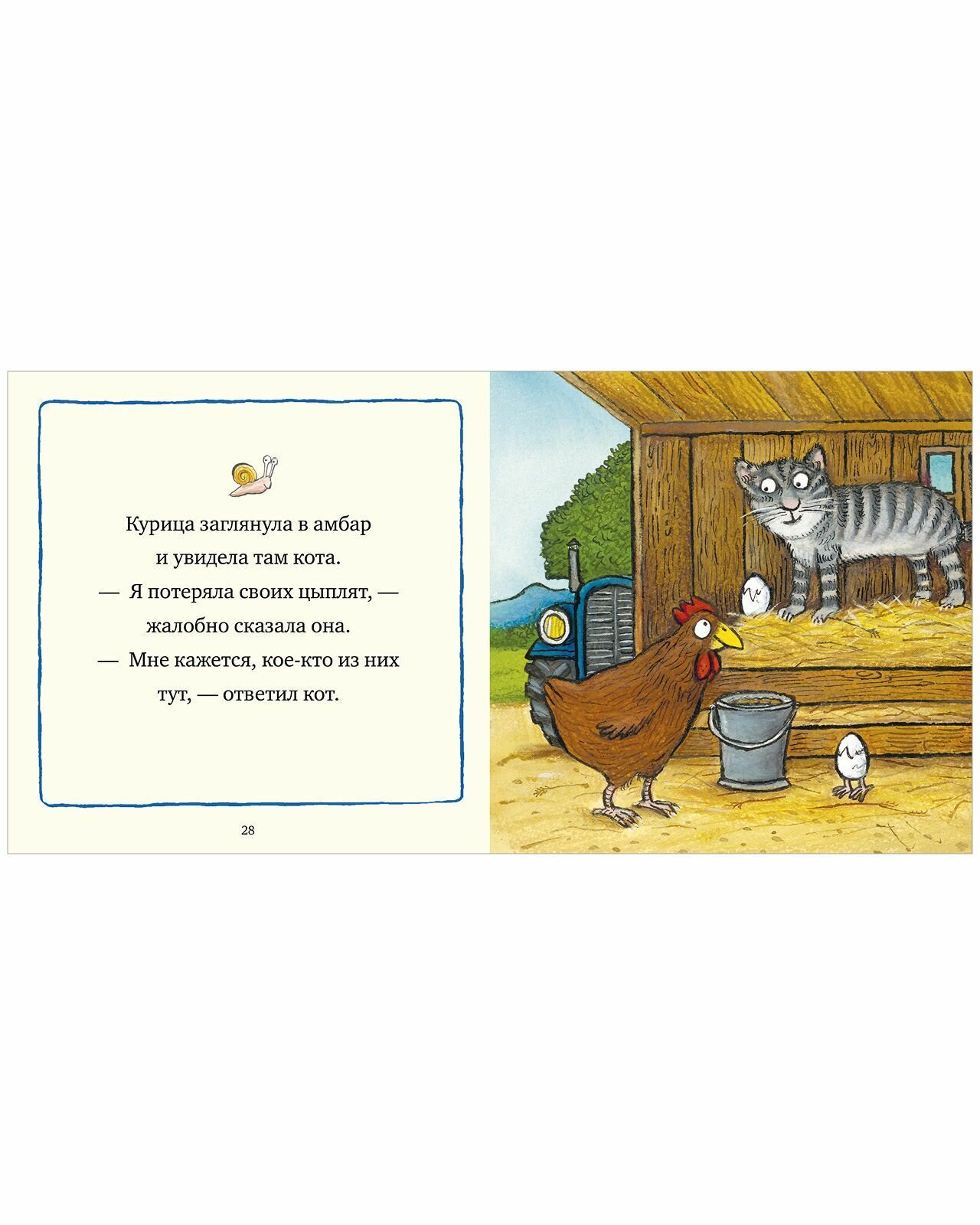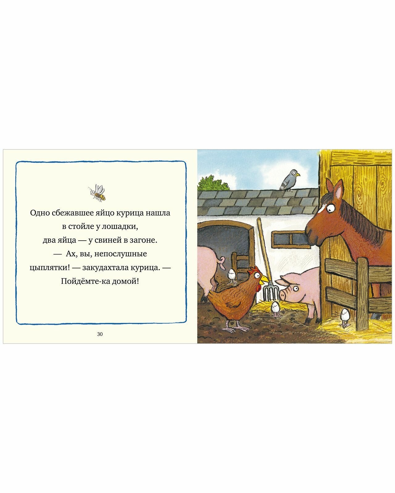 Книга «Веселая ферма. Сказки для малышей» идеально подойдет для самого первого чтения вслух ребенку: слева короткий текст, справа — большая яркая картинка. Пока взрослый читает, малыш рассматривает яркие иллюстрации, которые так полюбили миллионы детей.