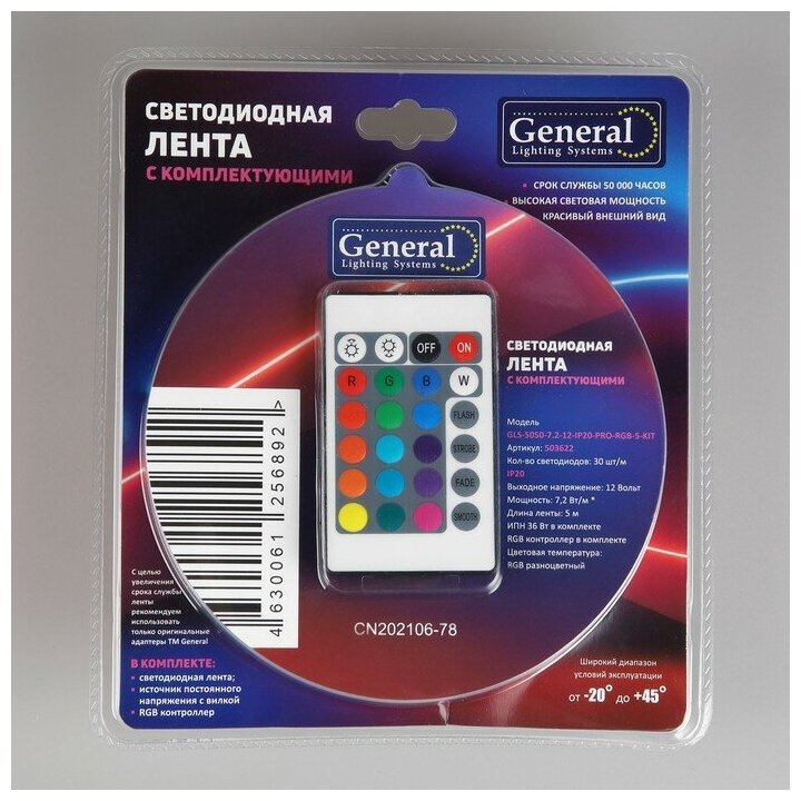 Сервис сравнения цен СкидкаГИД предлагает сравнить цены на товар «5м. Комплект светодиодной ленты RGB 5050 72W 12V 30LED/m IP20 General GLS-5050-30-7.2-12-IP20-PRO-RGB-5-KIT (503622)»
