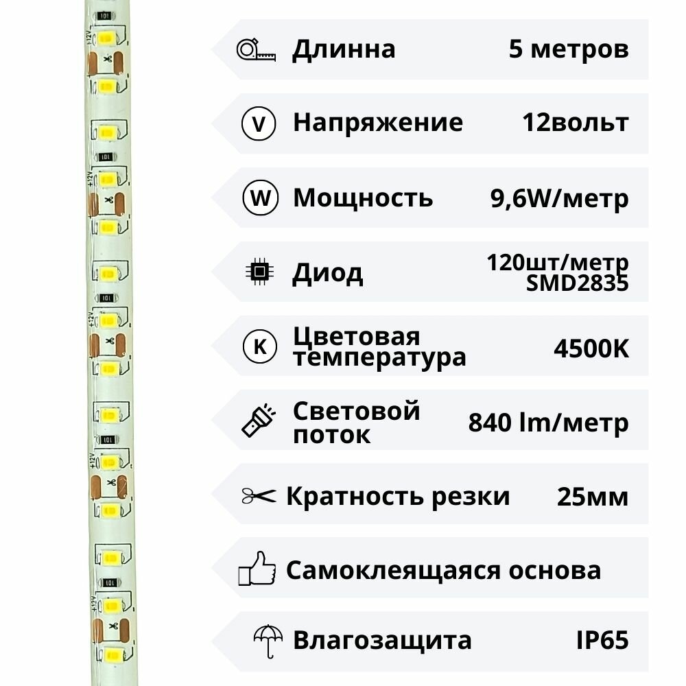 Лента с инновационными светодиодами SMD 2835, обеспечивающими повышенную яркость и световой поток.