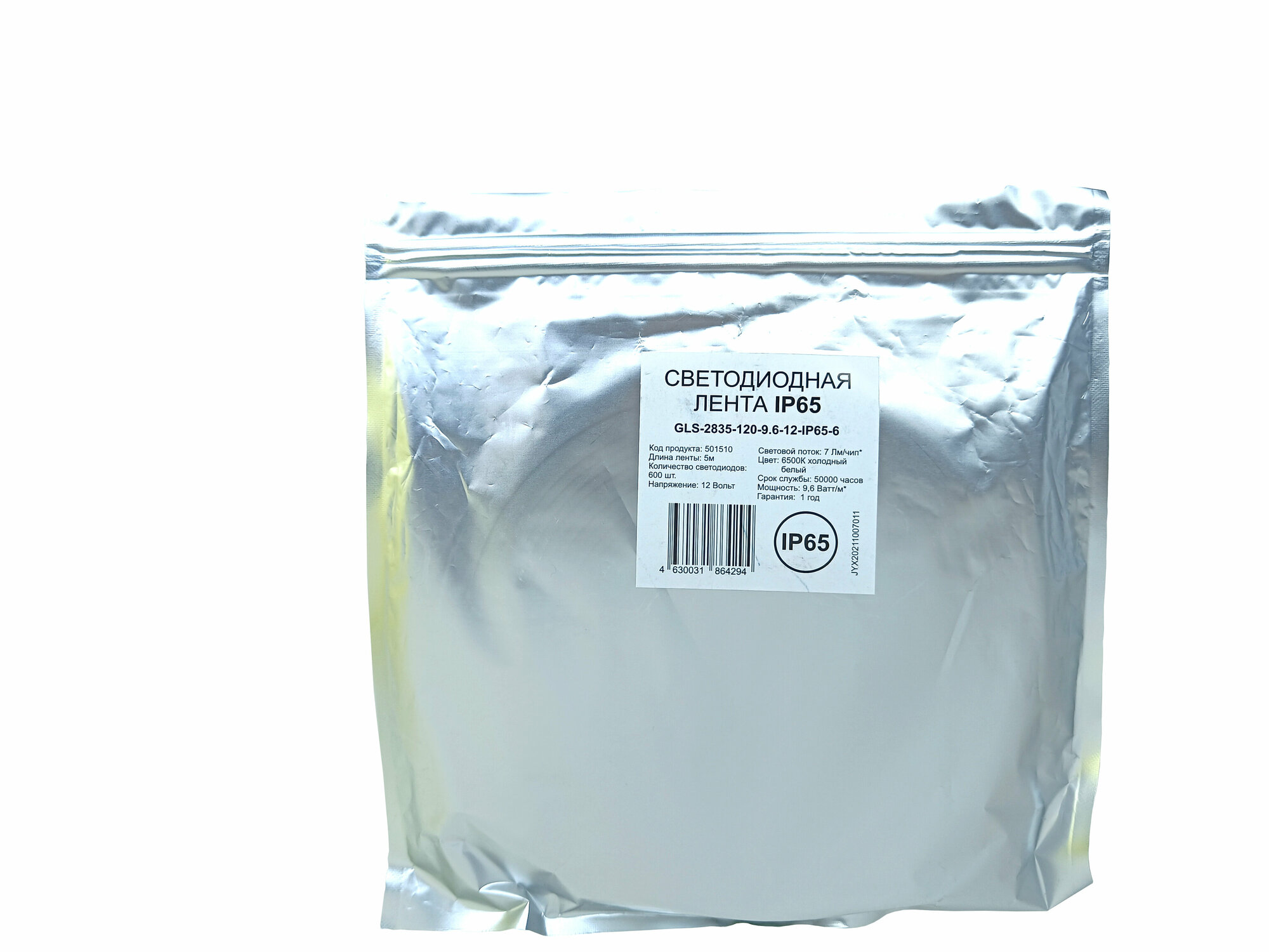 5м. Светодиодная лента холодного цвета 6500K 2835 96W 12V 120LED/m IP65 General GLS-2835-120-96-12-IP65-6 (501510)