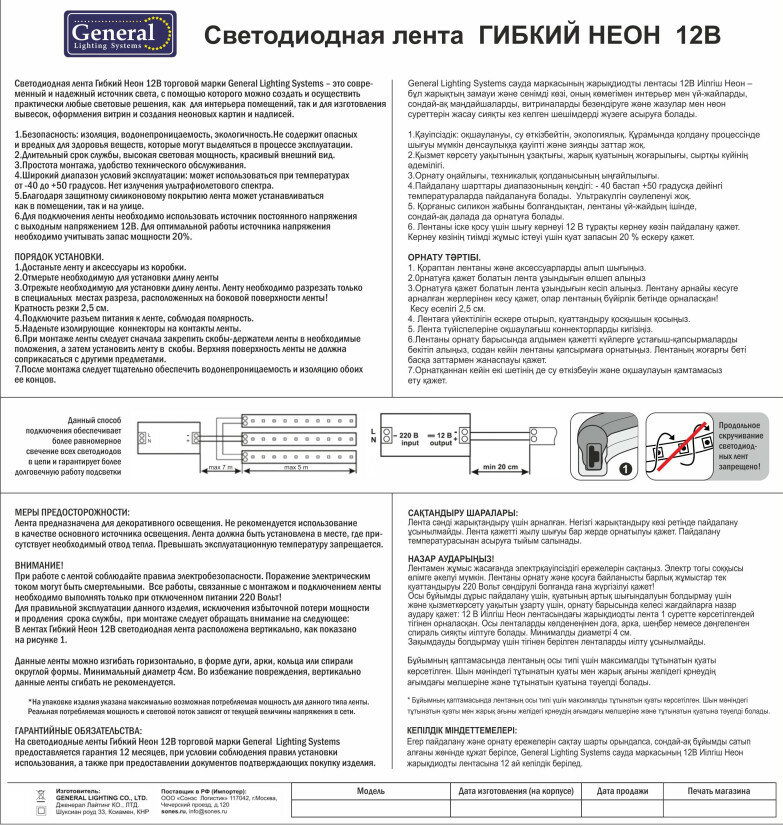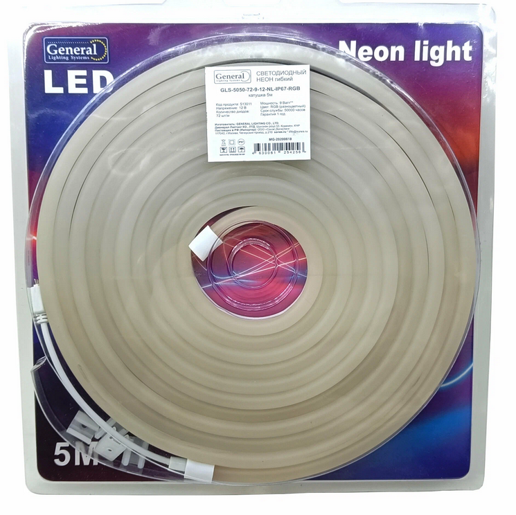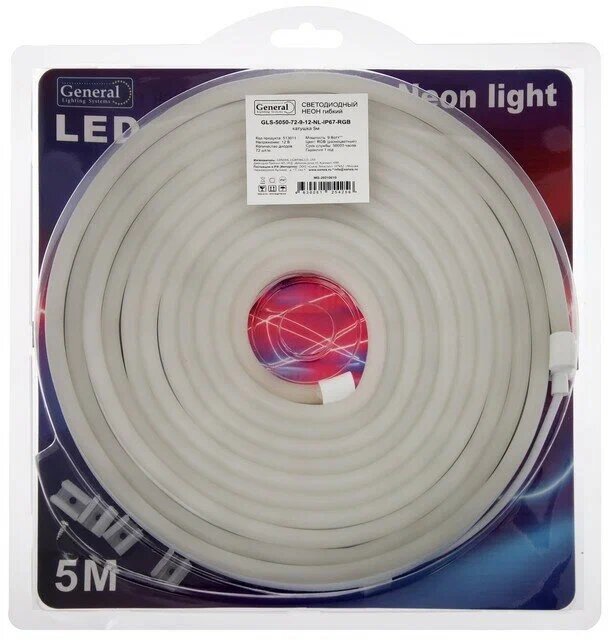 Особенность гибкий неон 513011 generalЛента с трехкристальными светодиодами 5050, обеспечивающими высокую яркость и равномерное свечение.
