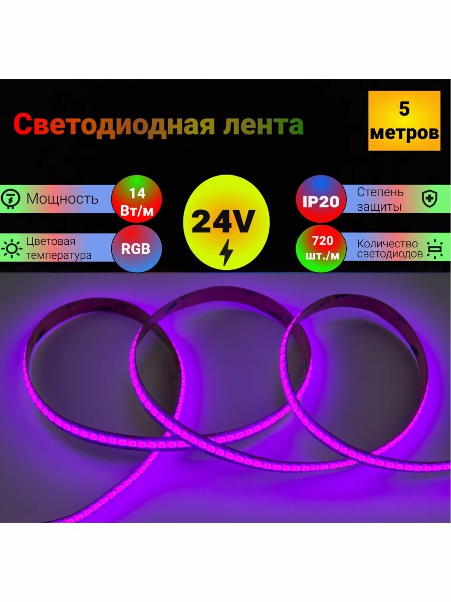 5м. Светодиодная лента RGB 12W 24V 720LED/m IP20 General GLS-COB-720-12-24-IP20-RGB (503871)