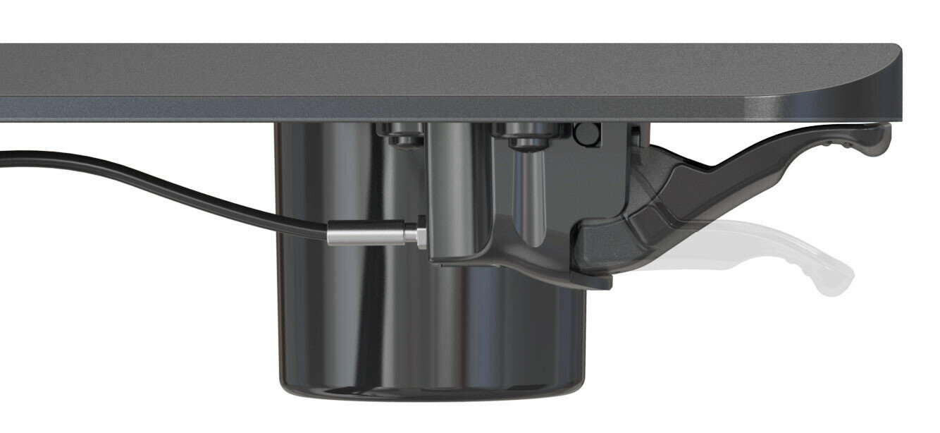 | Особенности | Подъемный механизм плавно опускает и поднимает столешницу, можно остановить в любом положении. Управление при помощи одного рычага. Наличие 4 колес обеспечивает маневренность, 2 колеса со стопором, для придания устойчивости. |