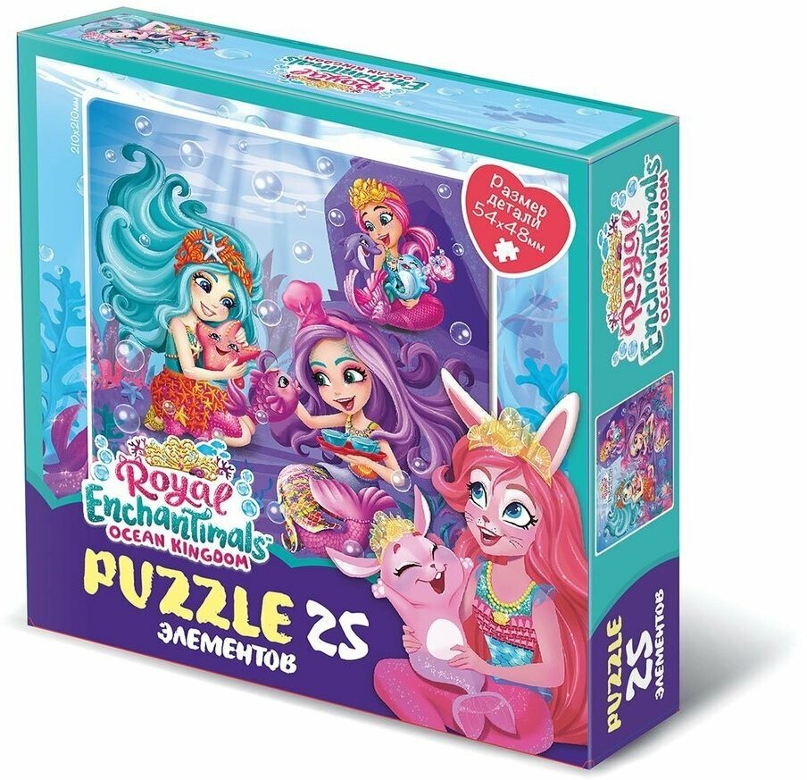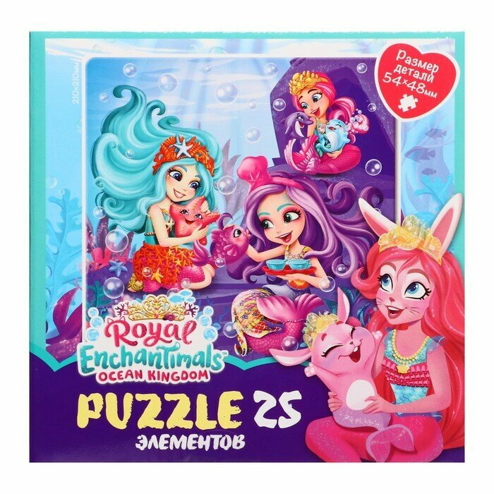 Пазл 25 элементов, основанный на любимых приключениях героинь Энчантималс в подводном мире понравится любому ребенку, а сборка яркой картинки принесет радость не только малышам, но и их родителям. Соберите всю коллекцию новых пазлов!