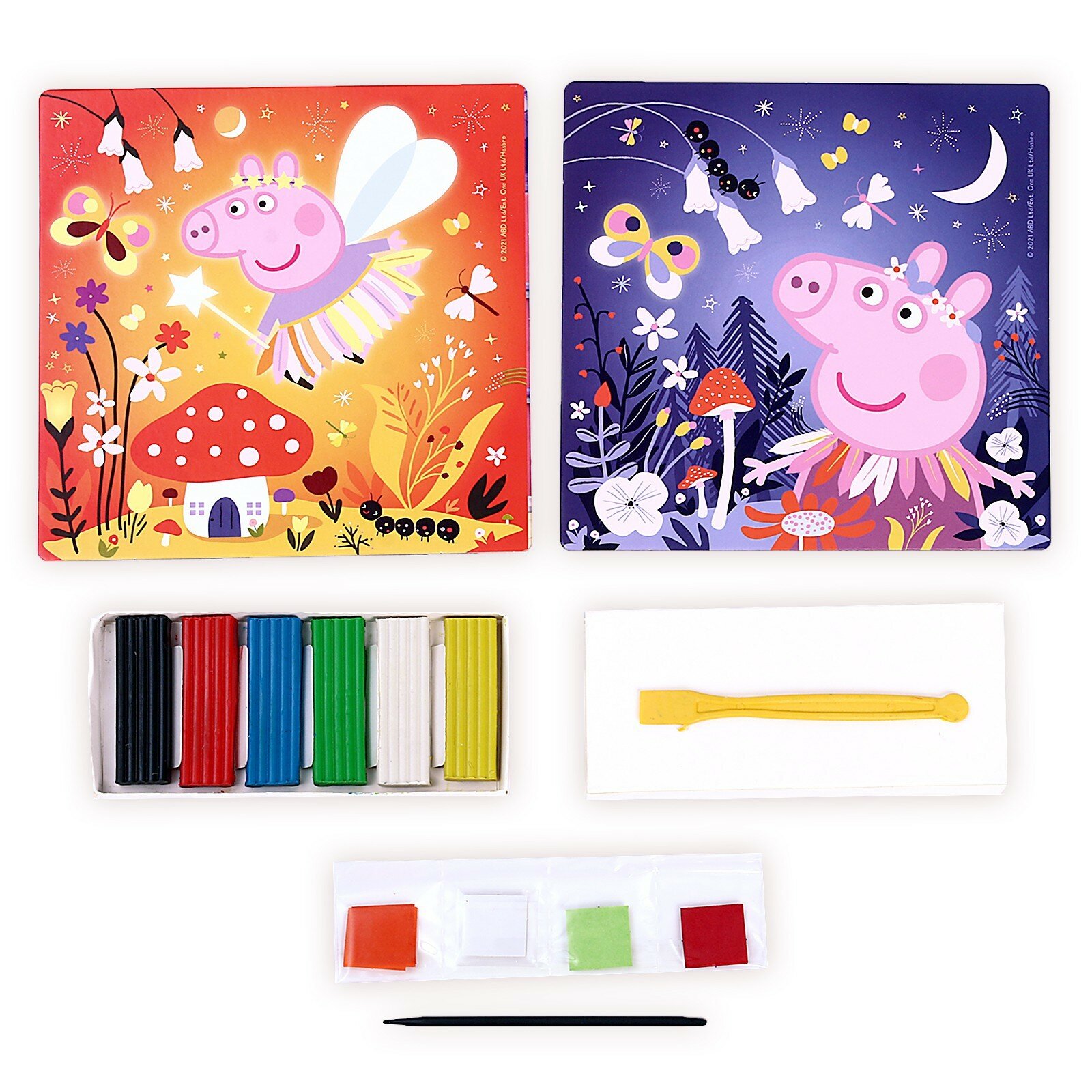 | Комплектация | 2 картинки (20х20 см.), пластилин (6 цветов), стек, набор бумаги для торцевания (4 цвета), стилус |