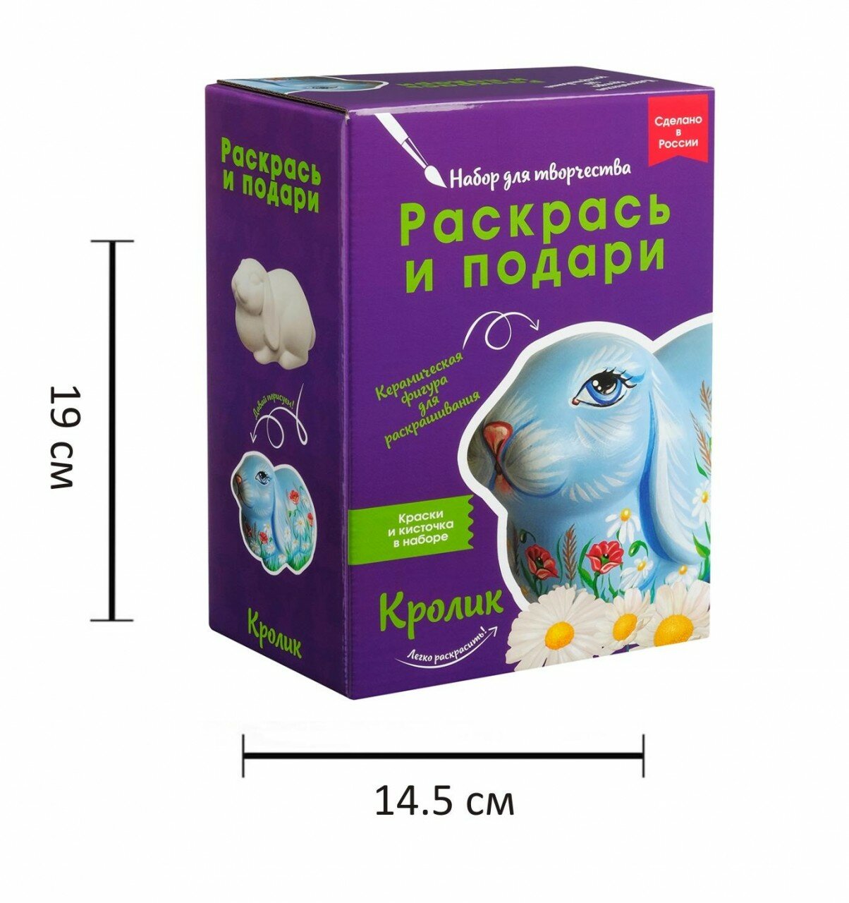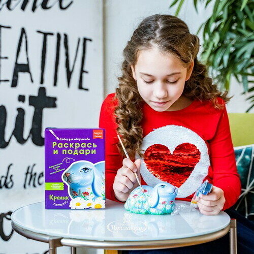 В основе сюжета этой фигуры - очаровательный вислоухий кролик. Милый питомец, которого можно раскрасить самому! Фигура выполнена из белоснежной керамики, в комплекте уже идет кисточка и краски. Ничего дополнительно докупать не нужно. Кролика можно раскрасить, скопировав узор на упаковке, либо придумать свой собственный.