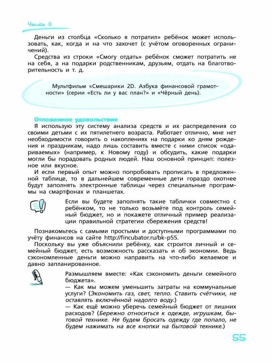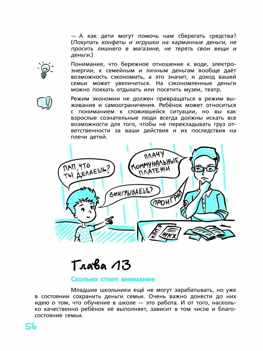 По сравнению с раскрученными Киосаки и Бодо Шефером очень отличается в лучшую сторону с учётом возрастных особенностей детей и экономики страны. Увы, но общество потребления, взращиваемое последние 30 лет, даёт свои плоды в виде бездумного отношения родителей и воспитываемых ими детей к личным финансам, удовлетворению сиюминутных потребностей через постоянное "хочу". Если грамотно относится к собственным финансам, то эта книга подскажет родителям не только как воспитывать детей, но и самим становиться финансово грамотным, брать ответственность за свои дела и поступки.