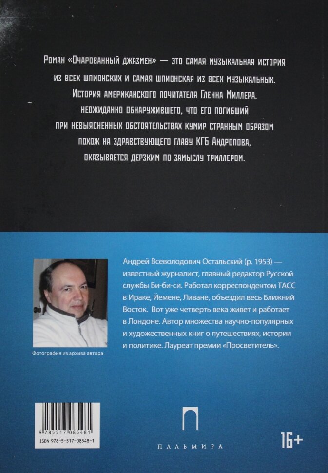 Роман "Очарованный джазмен" - это самая музыкальная история из всех шпионских и самая шпионская из всех музыкальных. История американского почитателя Гленна Миллера, неожиданно обнаружившего, что его погибший при невыясненных обстоятельствах кумир странным образом похож на здравствующего главу КГБ Андропова, оказывается дерзким по замыслу триллером.