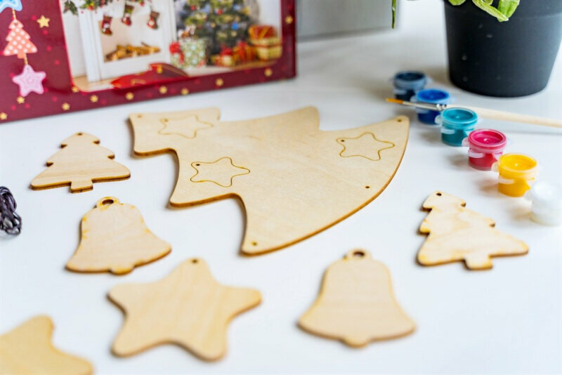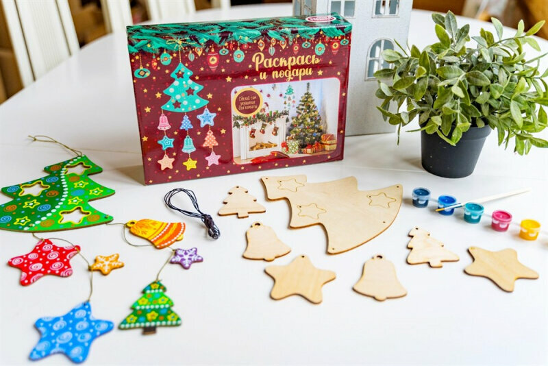 Создайте новогоднее настроение вместе с чудесным творческим набором от "Раскрась и подари". В наборе уже есть заготовки из натурального дерева, акриловые краски, удобная кисточка и подвес, чтобы сделать красивый декор. Придумайте, какой будет ваше праздничное дерево и воплотите его в жизнь!