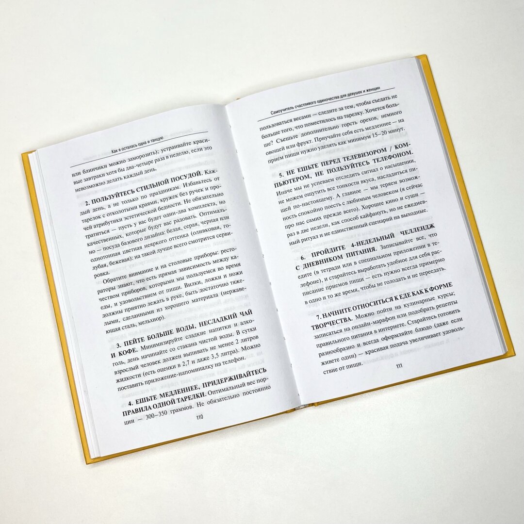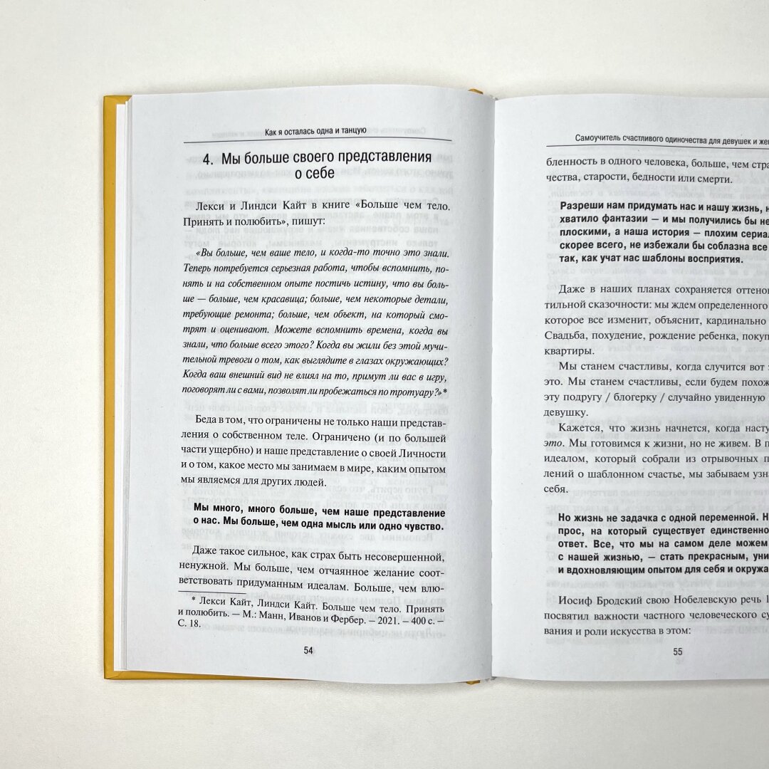 Плюс это действительно самоучитель: то есть в конце каждой главы и внутри есть задания, которые нужно выполнять. Собираюсь купить толстую тетрадку и уже перечитывать снова, с выполнением заданий. Мне кажется, эта книга будет полезна каждой женщине (я, например, замужем, но нахожу ее просто необходимой).Издание вполне качественное, обложка плотная, листы немного тонковаты, но все равно ОК. -