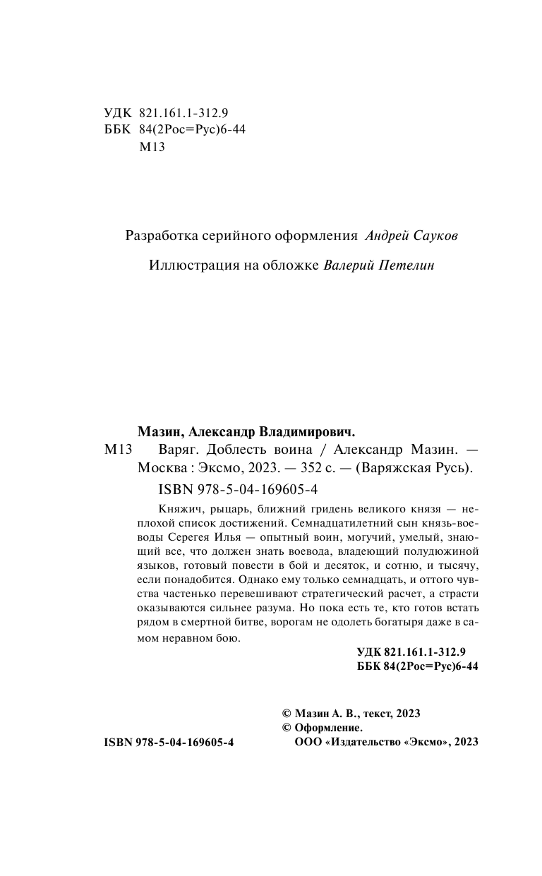 Книга: Варяг. Доблесть воина (Мазин Александр Владимирович); ООО "Издательство "Эксмо", 2023