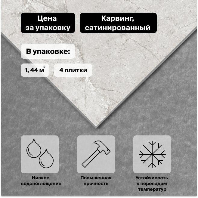 Модель: Zorani Bianco светло-серый сатинированный карвинг 60х60 см