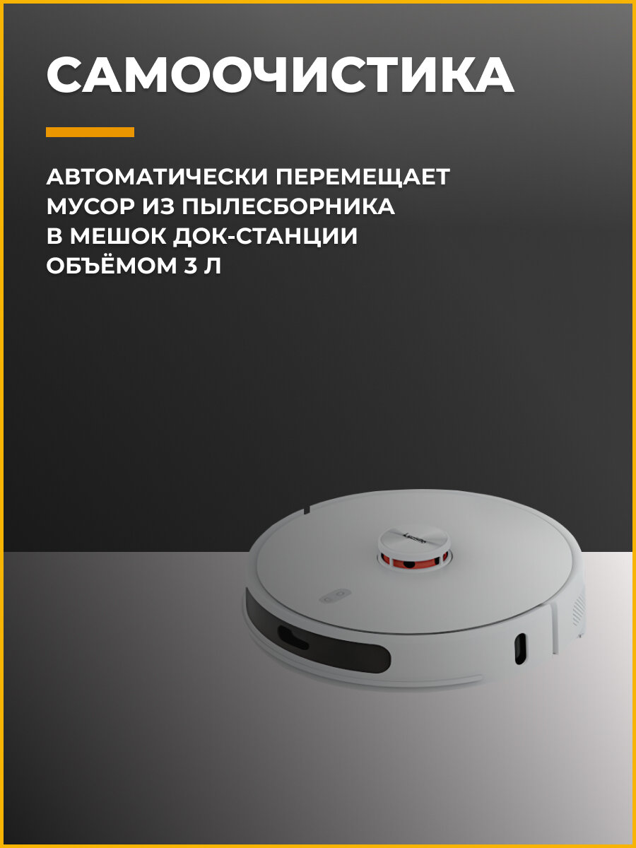 Xiaomi Lydsto Sweeping and Mopping Robot L1 White (YM-L1-W03) – робот-пылесос с бесщеточным двигателем, который создает силу всасывания до 3000 Ра. Подходит для уборки гладких и ковровых напольных покрытий. Одной зарядки аккумулятора хватает на 35 минут автономной работы. Длительность пополнения заряда батареи – около 6 часов. В устройстве установлена интеллектуальная система, которая регулирует и контролирует подачу воды, что исключает вероятность протечек. Объем резервуара для воды – 250 мл, чего достаточно для уборки 200 м2 площади. Девайс поставляется со станцией самоочистки объемом 3 литра. После завершения уборки робот-пылесос самостоятельно отправляется на базу для чистки пылесборника. Система стерилизации озоном предотвращает вероятность развития патогенных микроорганизмов внутри базы.