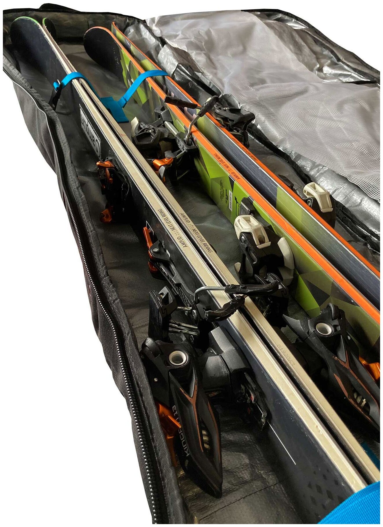 - Вместительный внутренний отсек на молнии для сноуборда и 2 комплектов горных лыж до 166 см.