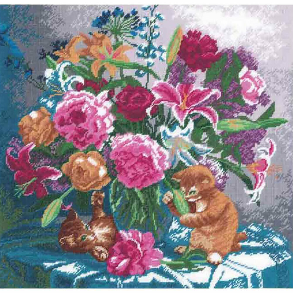 Натюрморт – классический жанр изобразительного искусства, которому отдавали предпочтение многие художники. Приобщитесь к этой традиции и вышейте натюрморт с пышным букетом из лилий, пионов на приглушенном фоне. Чтобы работа шла быстрее, рекомендуем делать разметку на канве водорастворимым маркером.