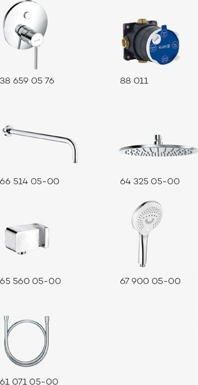 | Особенности | верхний душ с изменяемым углом; система против известковых отложений; защита от перекручивания; защита от обратного потока; ограничение температуры |