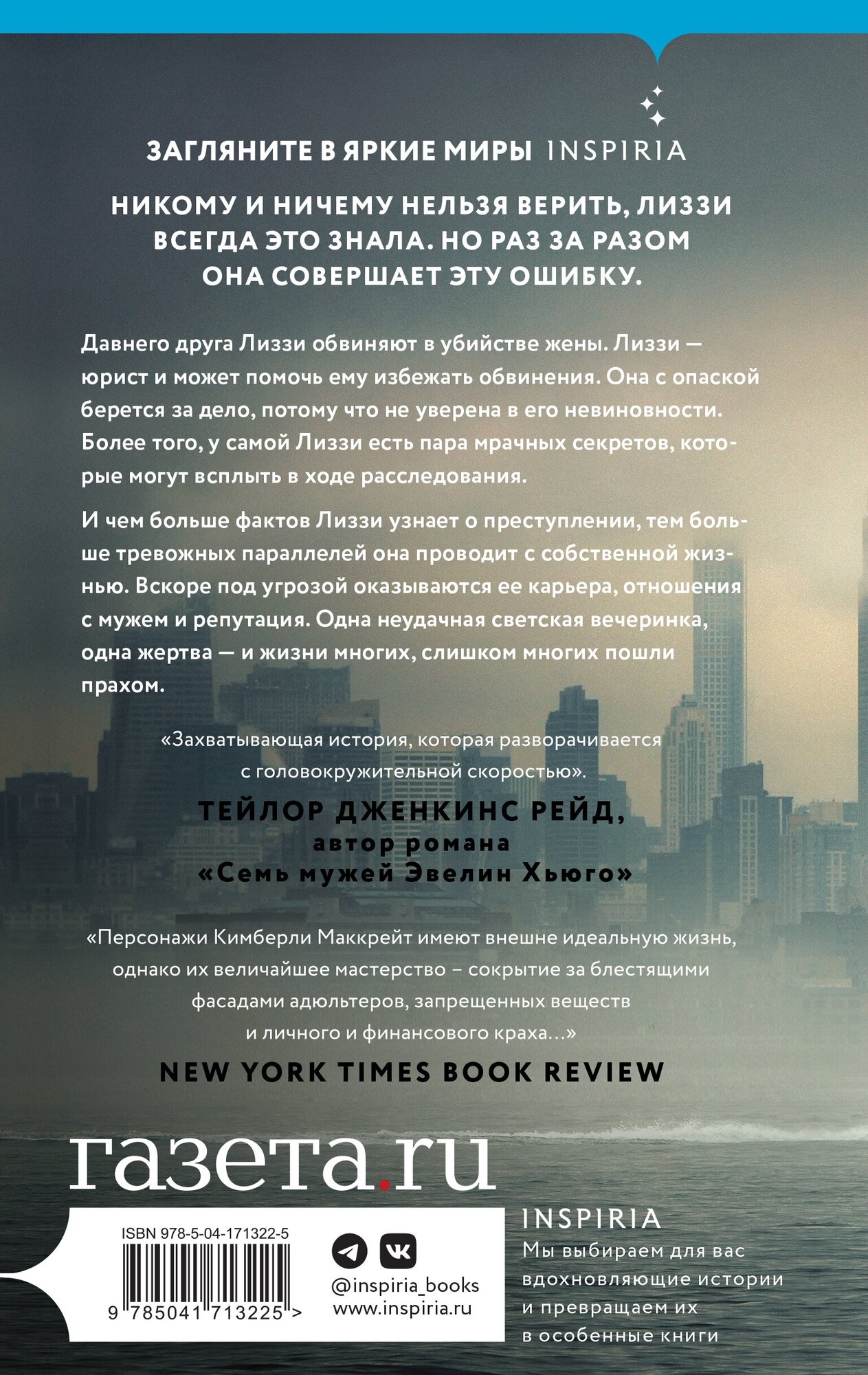 И чем больше Лиззи погружается в запутанную историю убийства, которое произошло после легкомысленной светской вечеринки, тем больше тревожных параллелей она проводит с собственной жизнью. Вскоре под угрозой оказываются ее репутация, карьера и отношения с мужем.