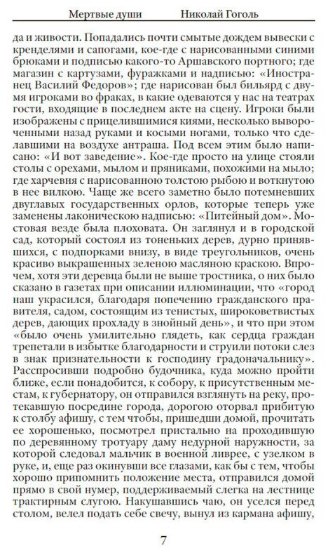 Книга Н.В.Гоголя сразу привлекает своим названием. Если не знать сюжет произведения, то покупая данную книгу будешь ждать нечто мистическое, леденящее душу и кровь, вот тут нас и ожидает самое интересное. В произведении нет никакой мистики, никаких ужасов и представителей жизни после смерти. Однако те самые \"мёртвые души\" в произведении присутствуют. И не смотря на обманчивое название - \"Мёртвые души\" по праву можно считать шедевром отечественной классики