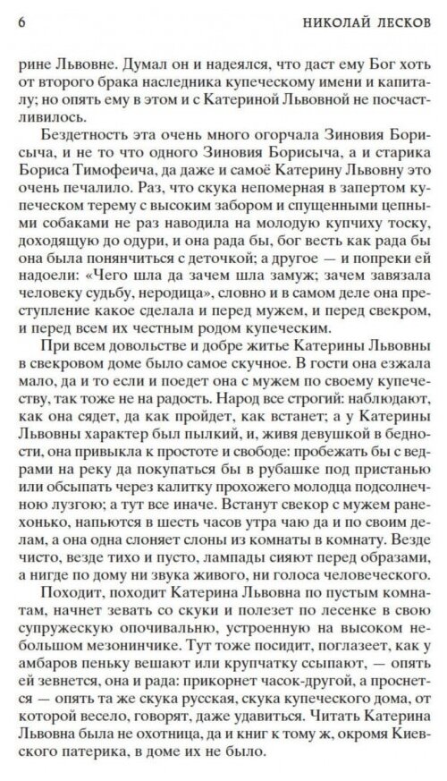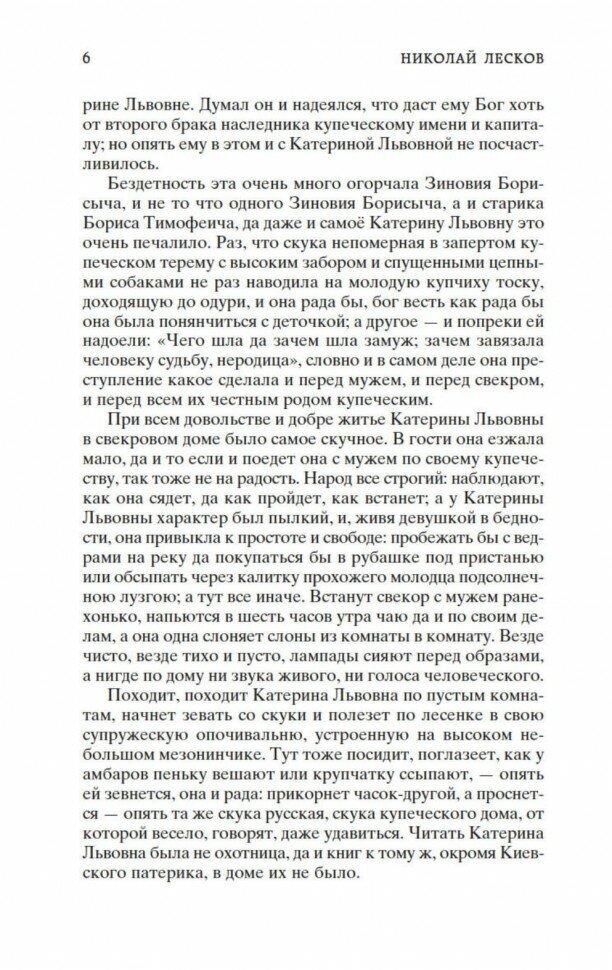 повесть \"леди макбет мценского уезда\", как и другие произведения лескова, написаны необычным уникальным слогом автора. написана она увлекательно, затягивает с первых страниц. в книге раскрывается история жизни главной героини, выданной замуж насильно. наглядно показано к чему приводит жесткий патриархат и тотальный контроль за жизнью девушки. финал произведения может и жесток, но все получили по заслугам