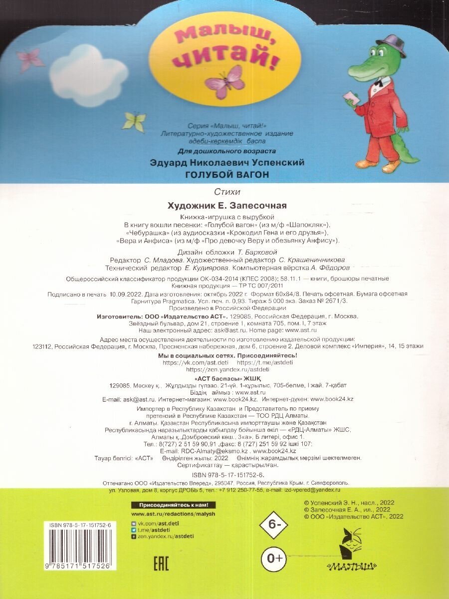 Сервис сравнения цен СкидкаГИД предлагает сравнить цены на товар «Книга: Голубой вагон (Эдуард Успенский); Издательство АСТ, 2022»