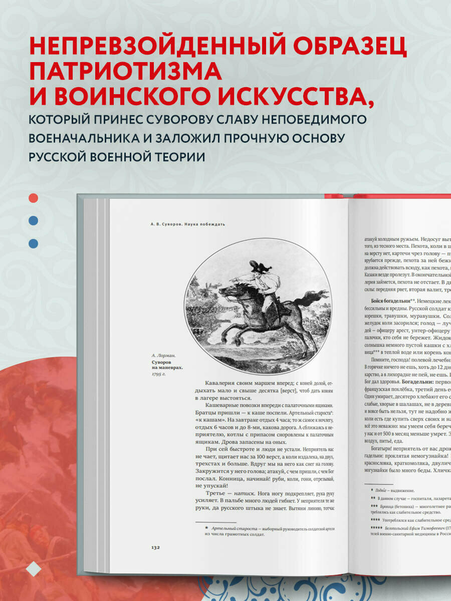 Кинга выглядит солидно, монолитно. На недорогой подарок ценителям исторических личностей точно пойдет. Очень необычно для меня - раскладной форзац. Жаль, что сами труды Суворова занимают не основную часть книги, в основном - это письма и документы, поэтому для многих может быть эта часть не так интересна.