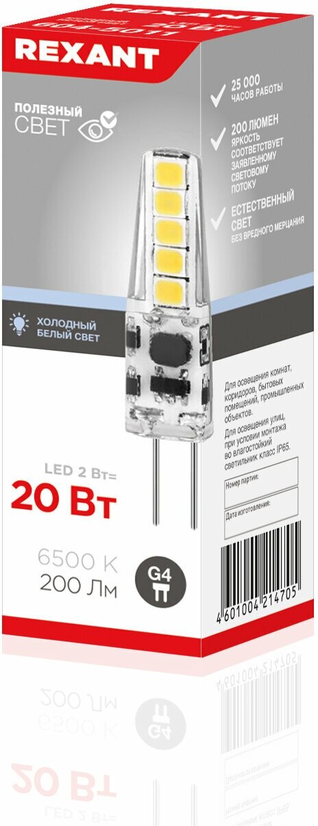 | Эквивалентная мощность лампы накаливания | 20 Вт (эквивалент лампы галогеновой капсульной) |