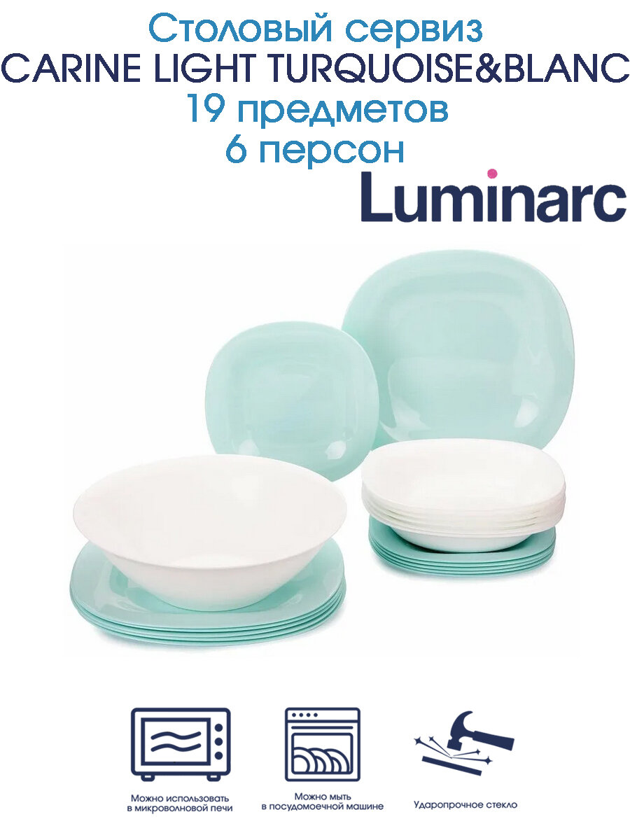 Столовый сервиз LUMINARC КАРИН ЛАЙТ ТЮРКУАЗ бело-голубой 19 предметов P7627