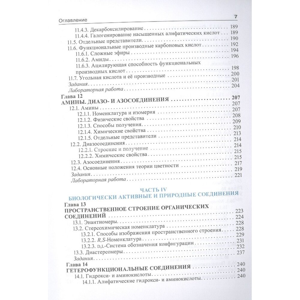 Учебник представляет собой сочетание теоретического курса и лабораторного практикума, взаимно дополняющих друг друга. Материал по важнейшим классам органических соединений изложен по функциональному принципу. В качестве оценочных средств в издание включено более 150 заданий по наиболее важным вопросам программы. Ещё больше заданий (около 250) предназначено для самостоятельной внеаудиторной работы учащихся непосредственно по ходу изучения теоретического материала. Для многих заданий приведены ответы или рекомендации к решению.