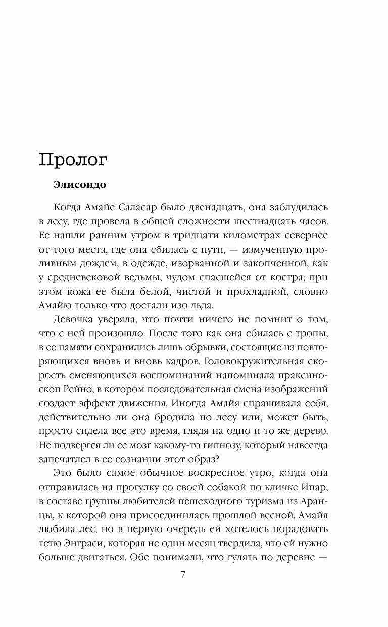 Когда Амайе Саласар было двенадцать лет, она потерялась в лесу. На рассвете ее нашли в тридцати километрах к северу. Одежда Амайи обгорела, как у средневековой ведьмы, вытащенной из костра, – а кожа, напротив, была белая, чистая и холодная, словно девочка только что вышла изо льда…