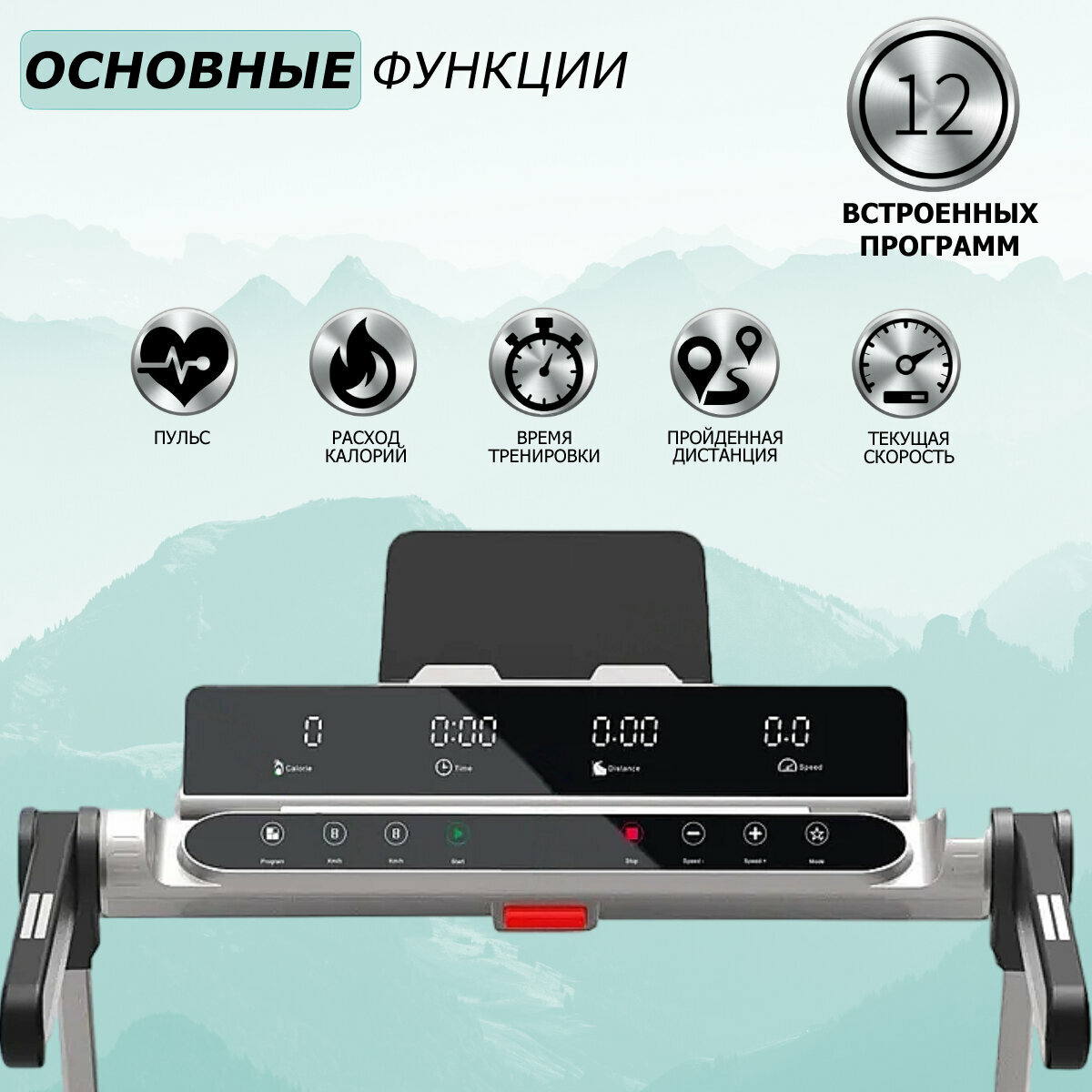 Многофункциональные программы: Беговая дорожка включает в себя 12 встроенных программ, а также 3 пользовательские программы и тест физического состояния тела FAT, что позволяет вам выбрать оптимальную тренировку в соответствии с вашими целями и уровнем физической подготовки.