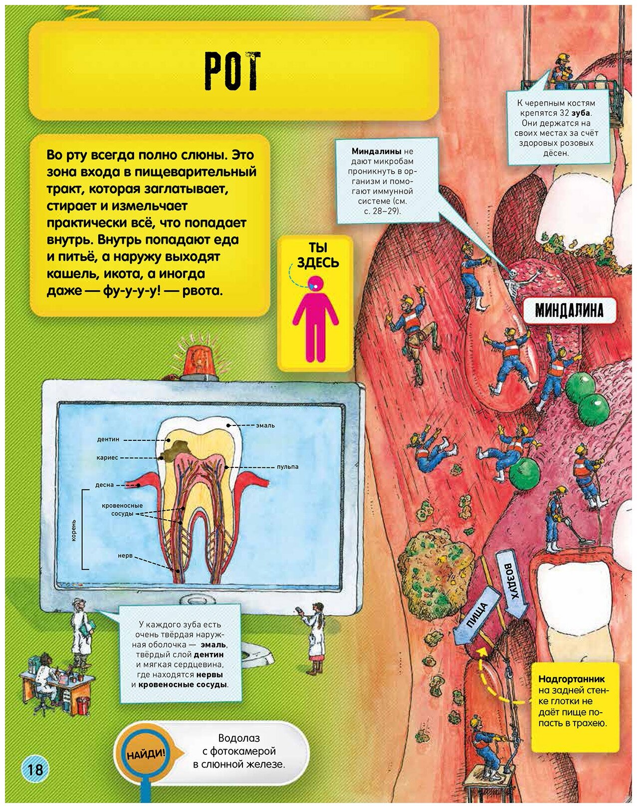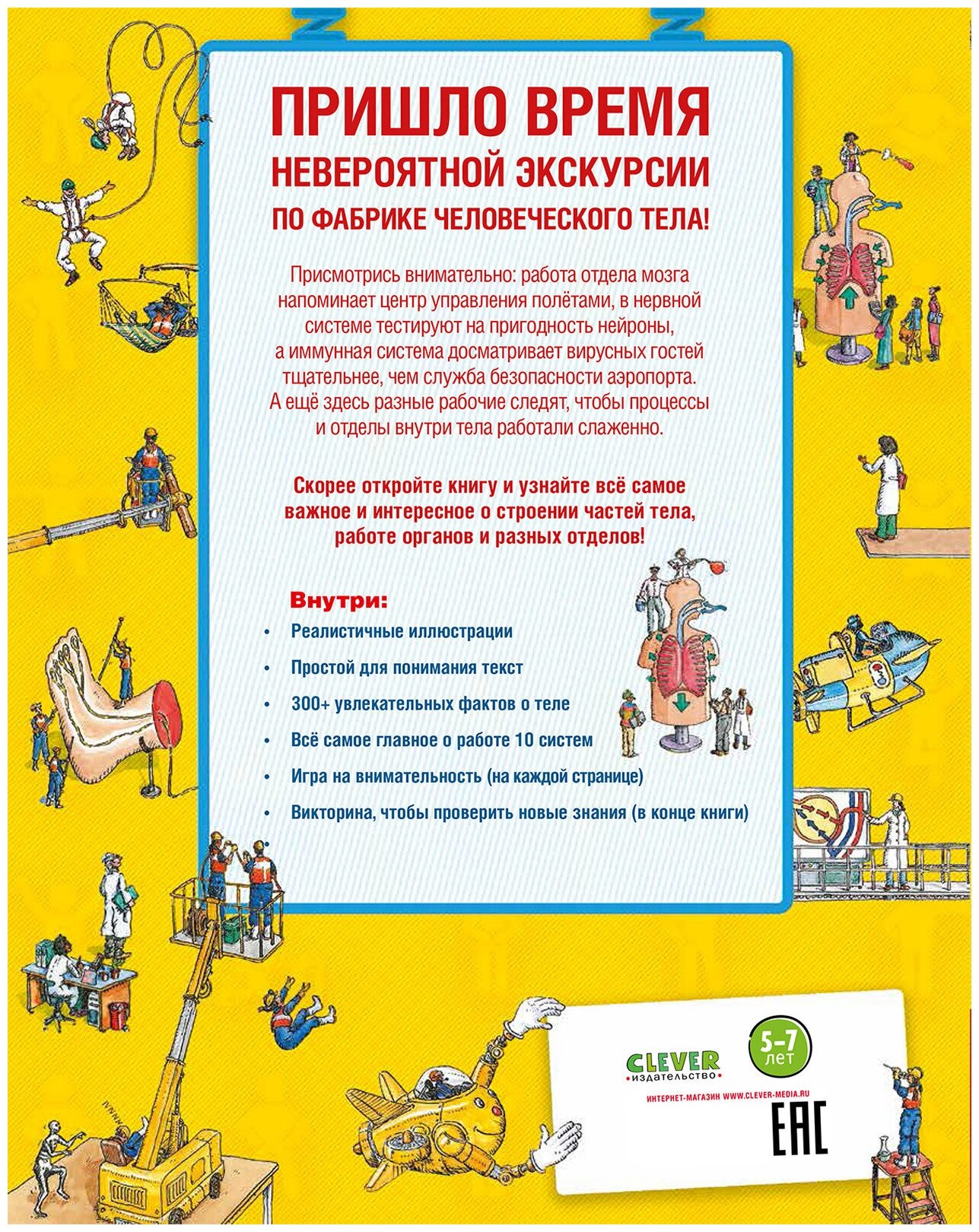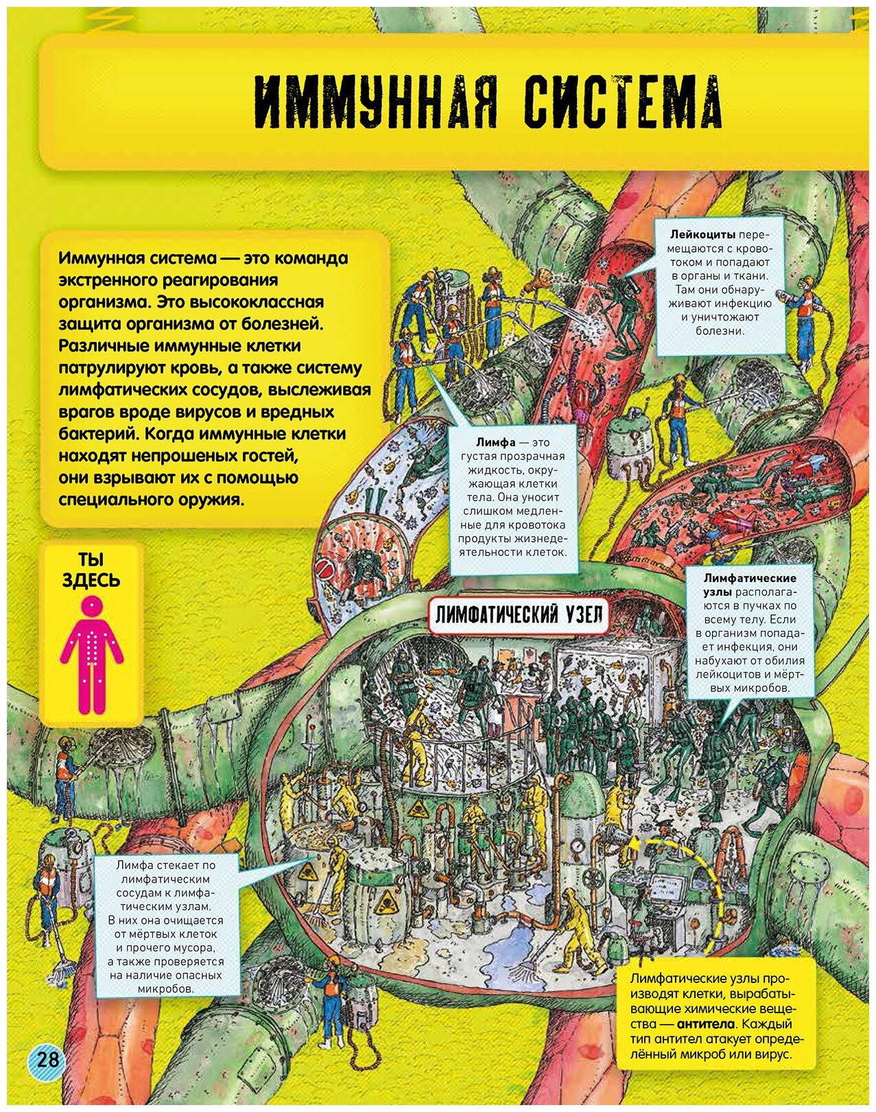 Присмотрись внимательно: работа отдела мозга напоминает центр управления полетами, в нервной системе тестируют на пригодность нейроны, а иммунная система досматривает вирусных гостей тщательнее, чем служба безопасности аэропорта. А еще здесь разные рабочие следят, чтобы процессы и отделы внутри тела работали слаженно.